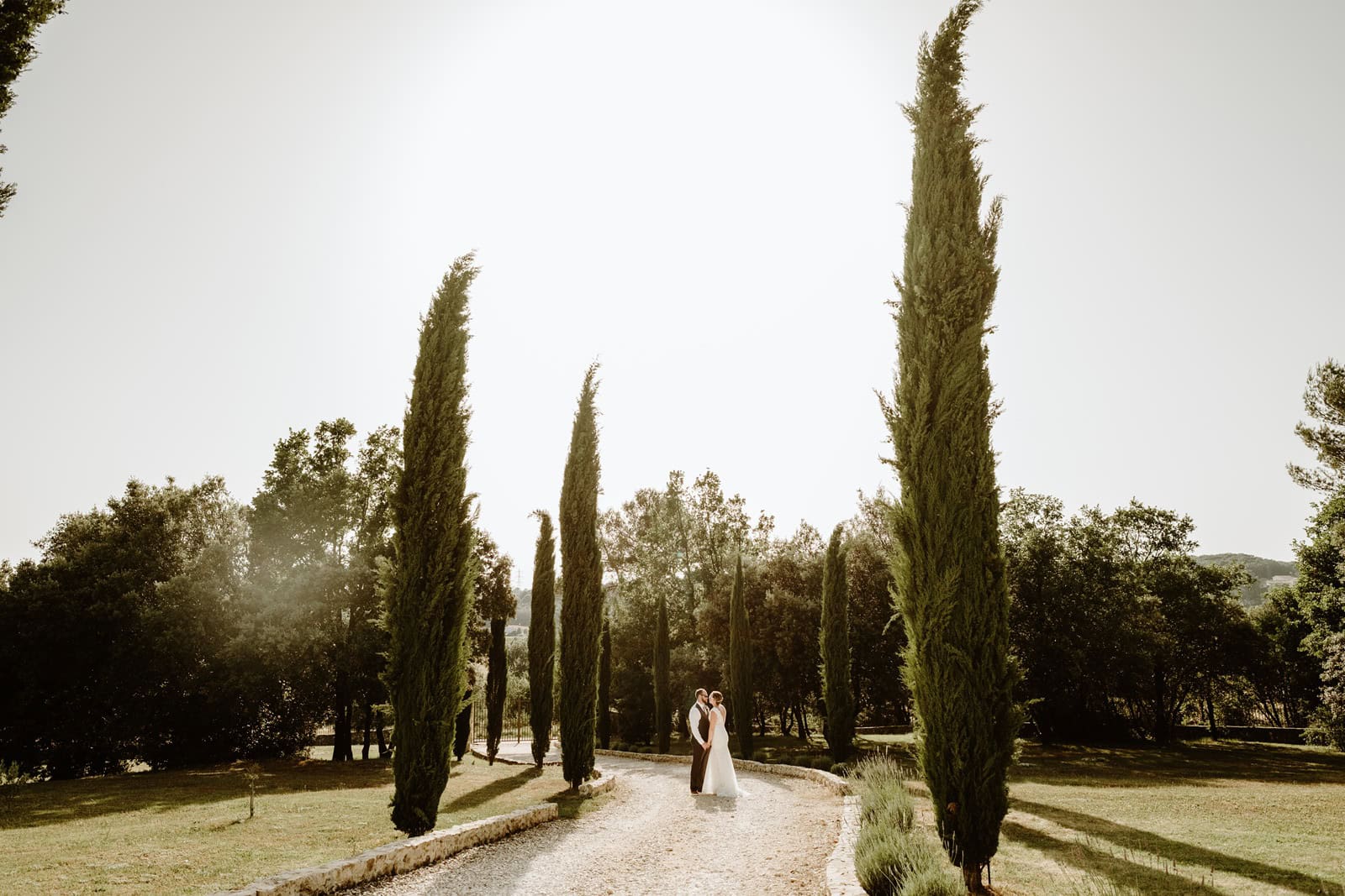 The atmosphere was lively and relaxed, with guests chatting and laughing as they sipped their drinks and soaked in the warmth of the Provençal sun. Meanwhile, the couple snuck off with their photographer to capture some romantic portraits around the estate.