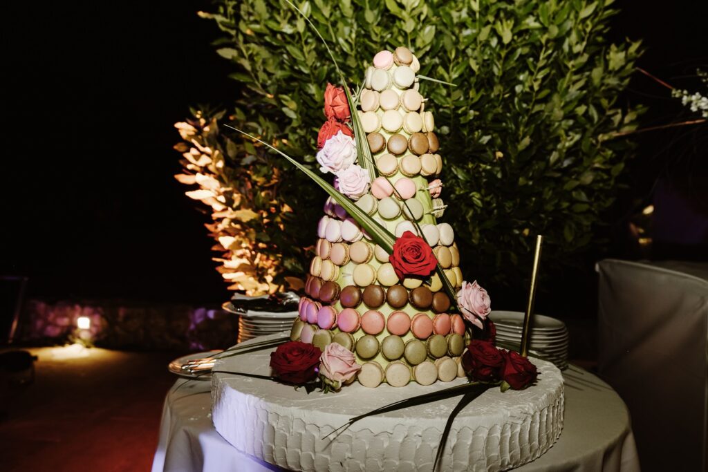 When dinner ended, it was time to cut the wedding cake. The couple chose a traditional French croquembouche, a tower of delicate macarons, complete with sparklers that lit up the night. Guests sampled their favorite flavors before hitting the dance floor.