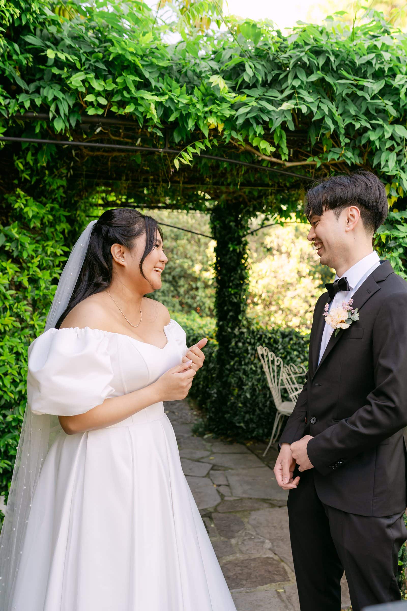 Justin & Yedda: We always had in our minds having an intimate wedding ceremony, in a beautiful and serene location. I’m a big Star Wars fan and I always wanted to visit the real-life planet Naboo location for Anakin and Padmés elopment, Lake Como. Over a decade ago, we both thought, “it’d be nice to elope at Lake Como like in the movie, but that’s crazy though”.