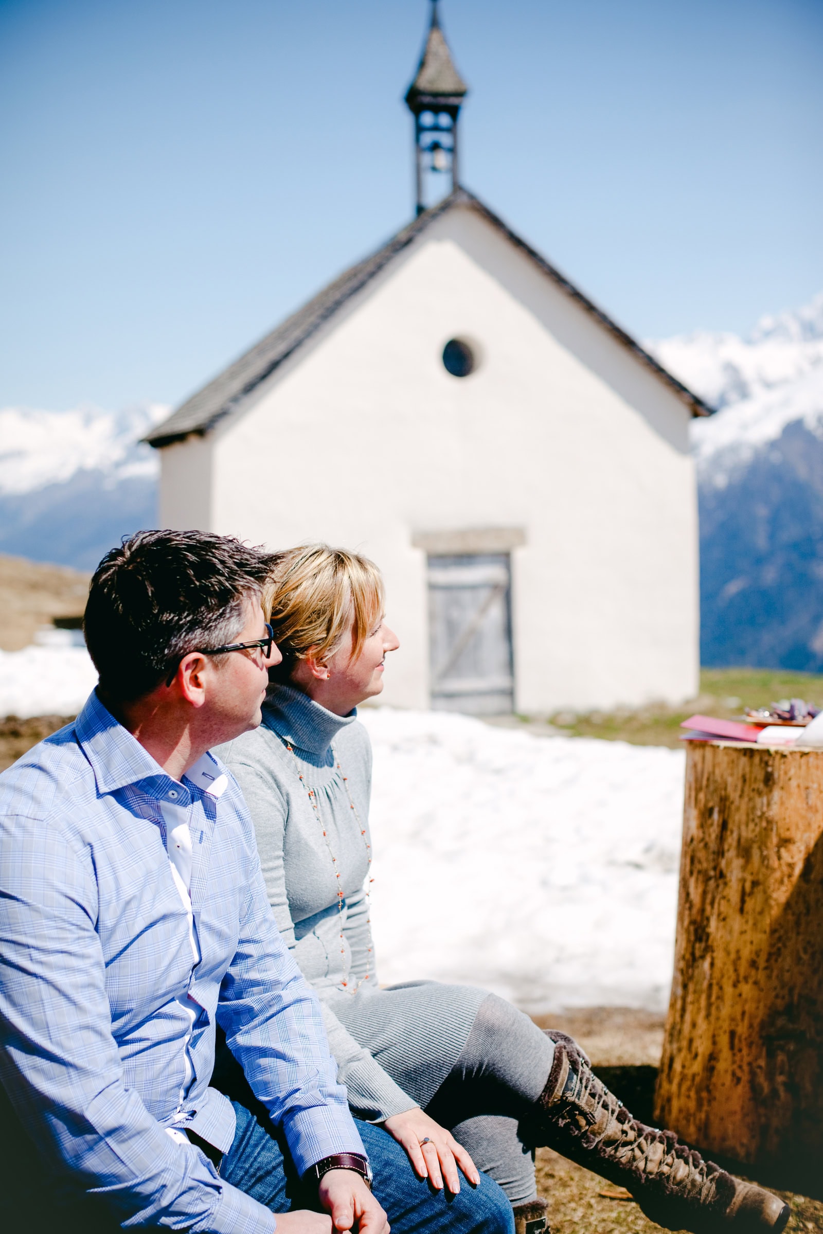 Erika: Our intimate wedding took place over two days, giving us and the guests tome to relax and enjoy. The first day, we had our civil wedding at the ‘Stockalperschloss’ in Brig. The next day, we held a personal, symbolic ceremony at ‘Alpe Richinen’, an alpine meadow. The ceremony was next to the small chapel ‘Maria zum Schnee’ and a sun-worn wooden cabin.