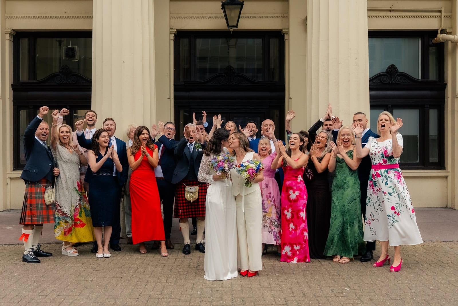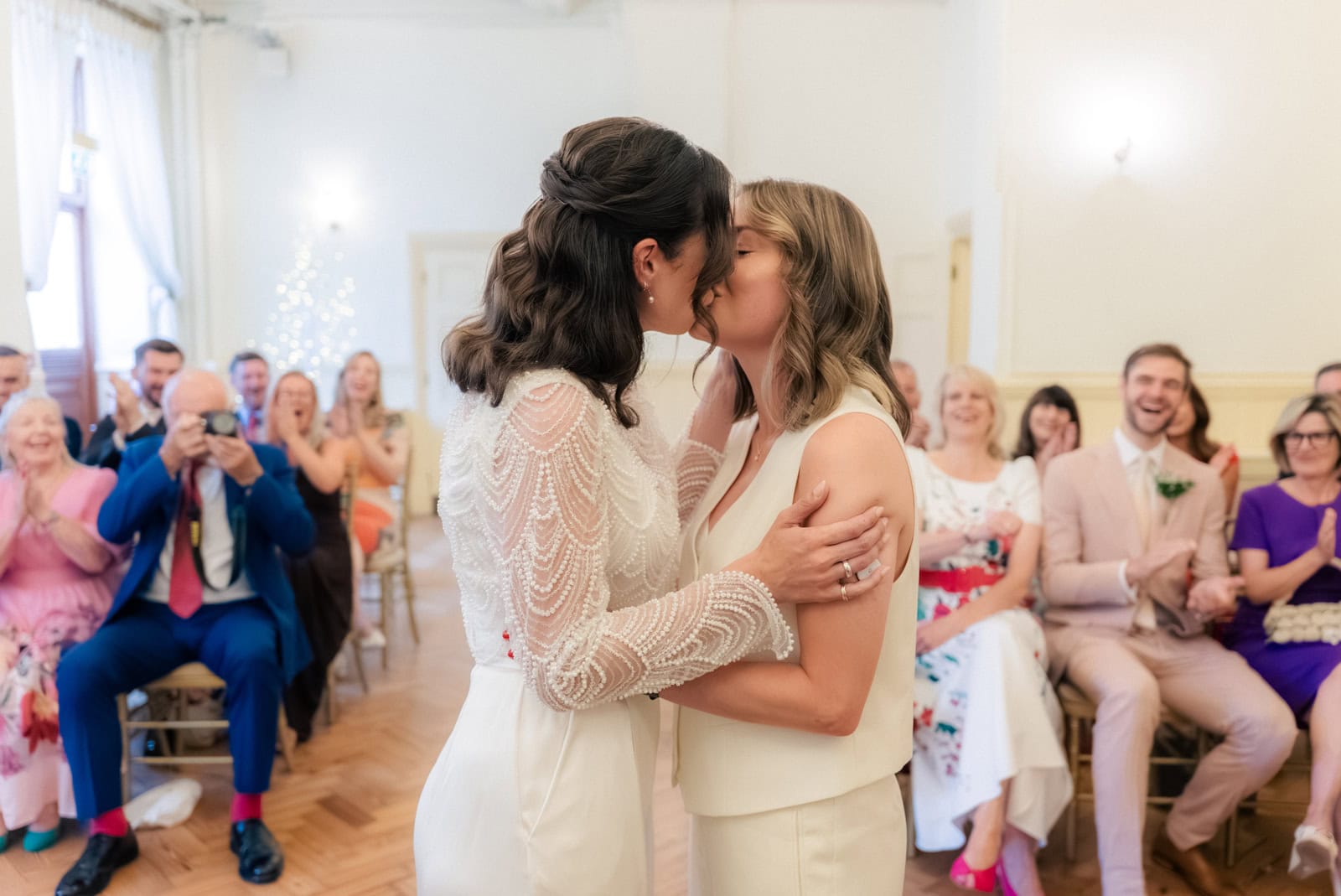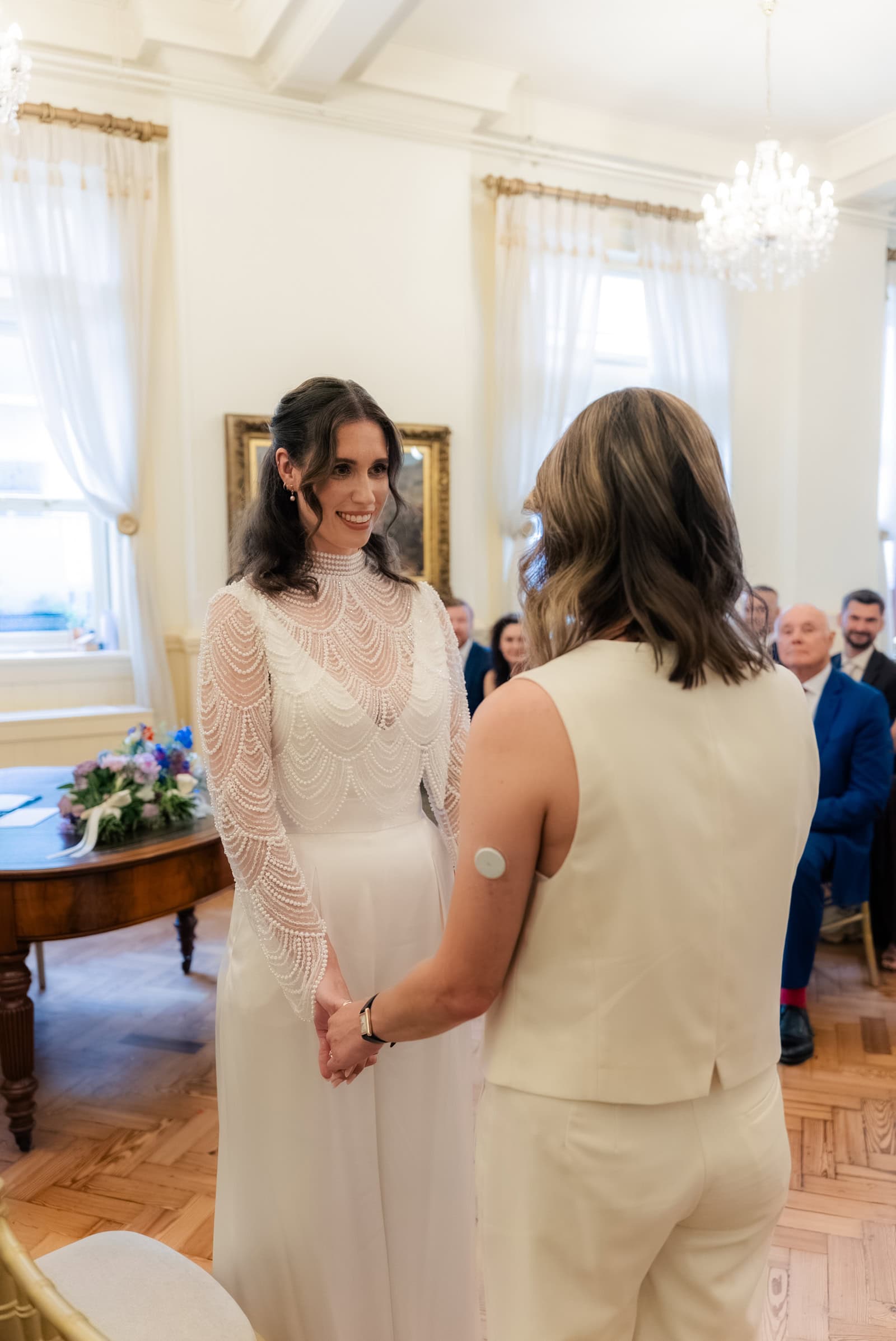 Laura and Olivia’s wedding was intimate, relaxed, and cheerful. The ceremony took place at Brighton Town Hall, a warm and inviting space, followed by a reception in a beautiful room. The couple wanted candid, paparazzi-style couples photos.