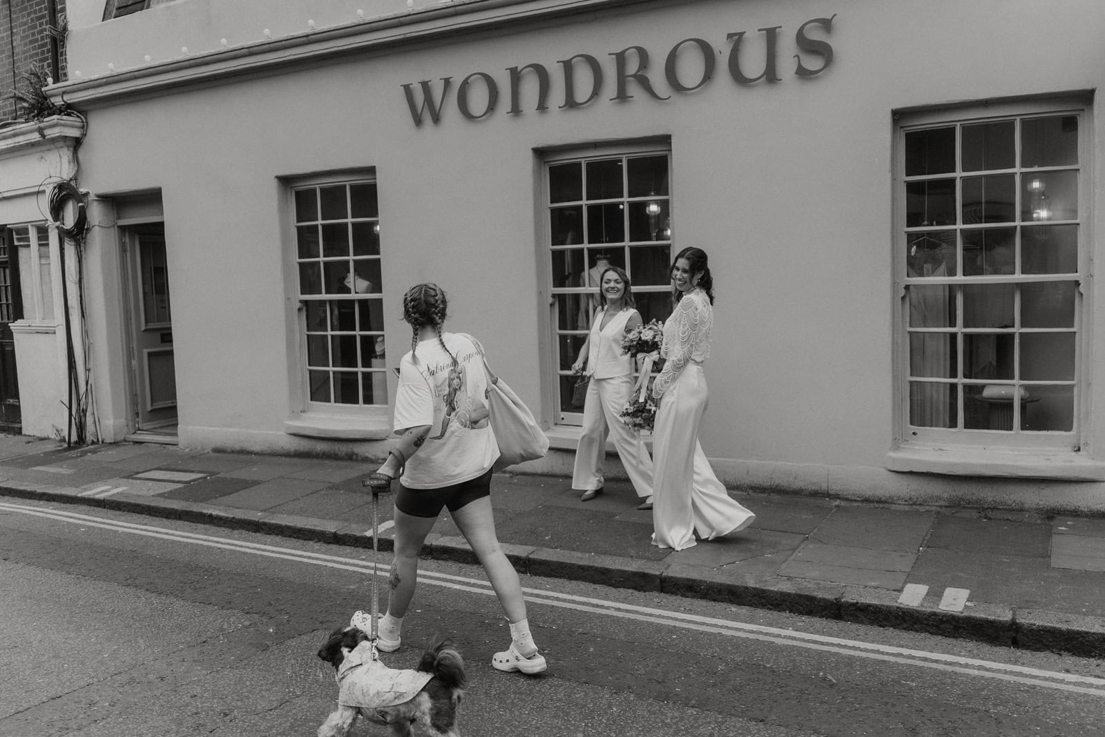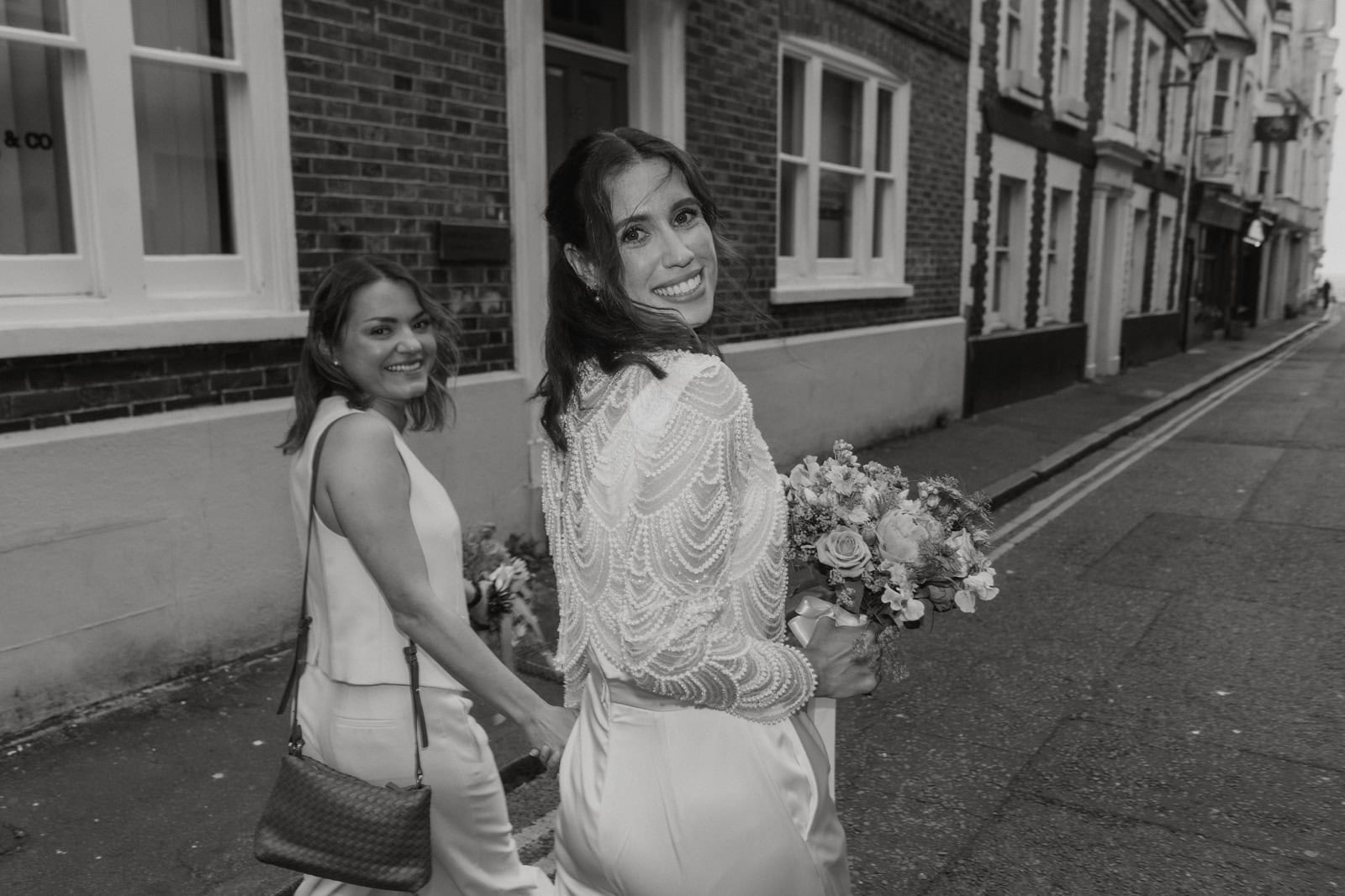 Kitty, the photographer: I love Brighton for its vibrant, eclectic energy and the way it balances seaside charm with modern, forward thinking style. The seafront and quintessential English streets provide a playful and dynamic backdrop for couples who want candid, joyful imagery. Brighton Town Hall offers a warm and inviting ceremony space, whilst Guesthouse Hotel has a sophisticated but laidback atmosphere, that perfectly suits the types of couples getting married in Brighton – cool and fashionable as well as down to earth and understated. The city encourages spontaneity, whether it’s jumping in a taxi, exploring streets, or braving a windy seafront, making it a perfect location for couples who want natural, movement-filled, and memorable wedding photography.