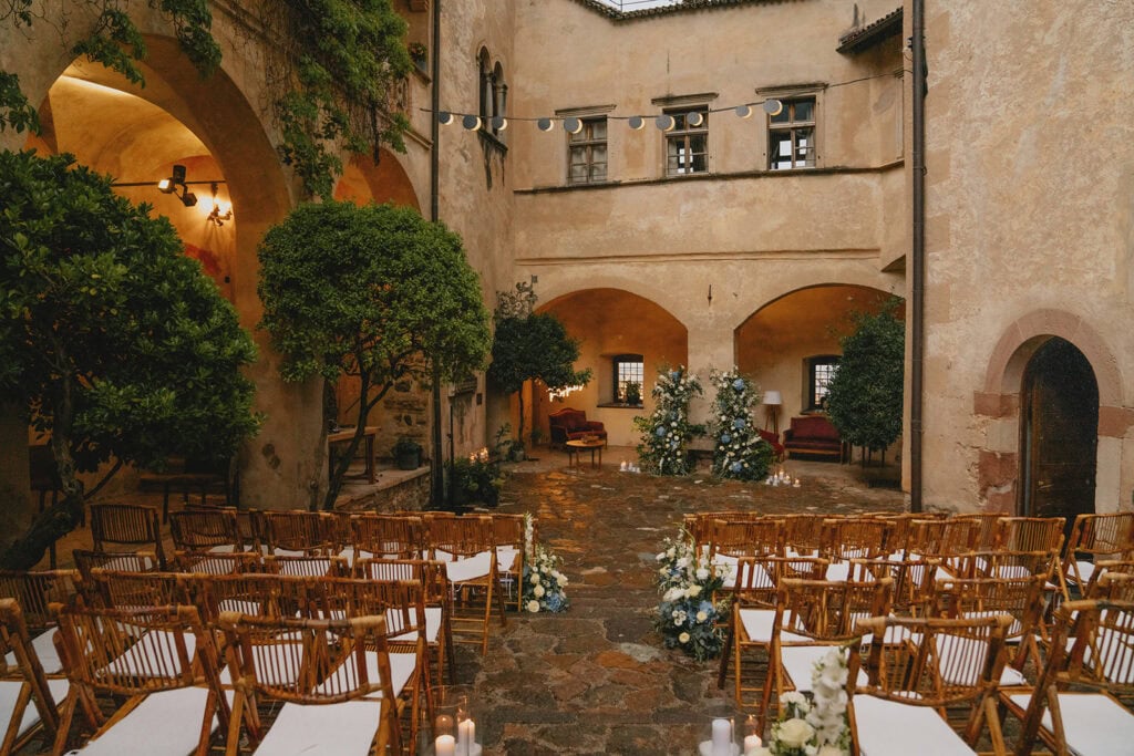 An exclusive Renaissance castle located in the heart of Bolzano. It feels like a hidden oasis, featuring a private garden, a luxury spa, and towers that house guest suites. It’s perfect for a private city wedding with an aristocratic flair.