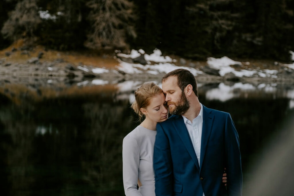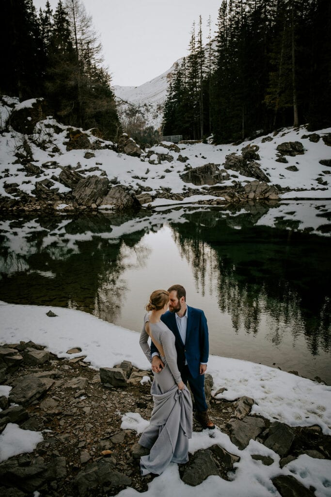 Lauren & Jeremy’s elopement day was a day of perfect winter magic. Their morning was spent exploring a frozen mountain lake, and in the evening, they warmed themselves up with mulled wine under the Christmas tree lights at the Christmas markets in Innsbruck.