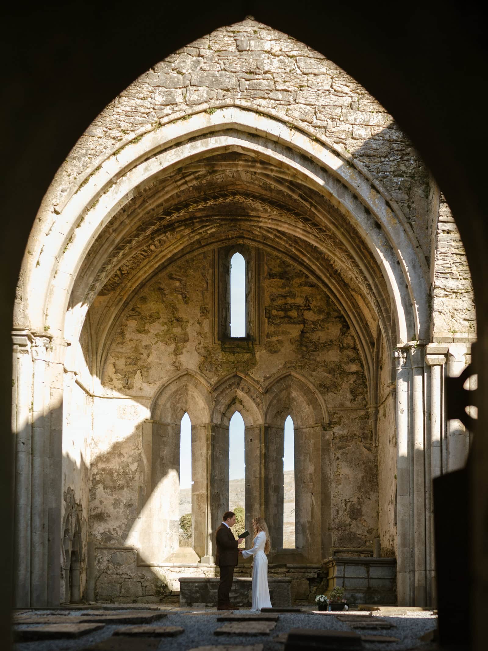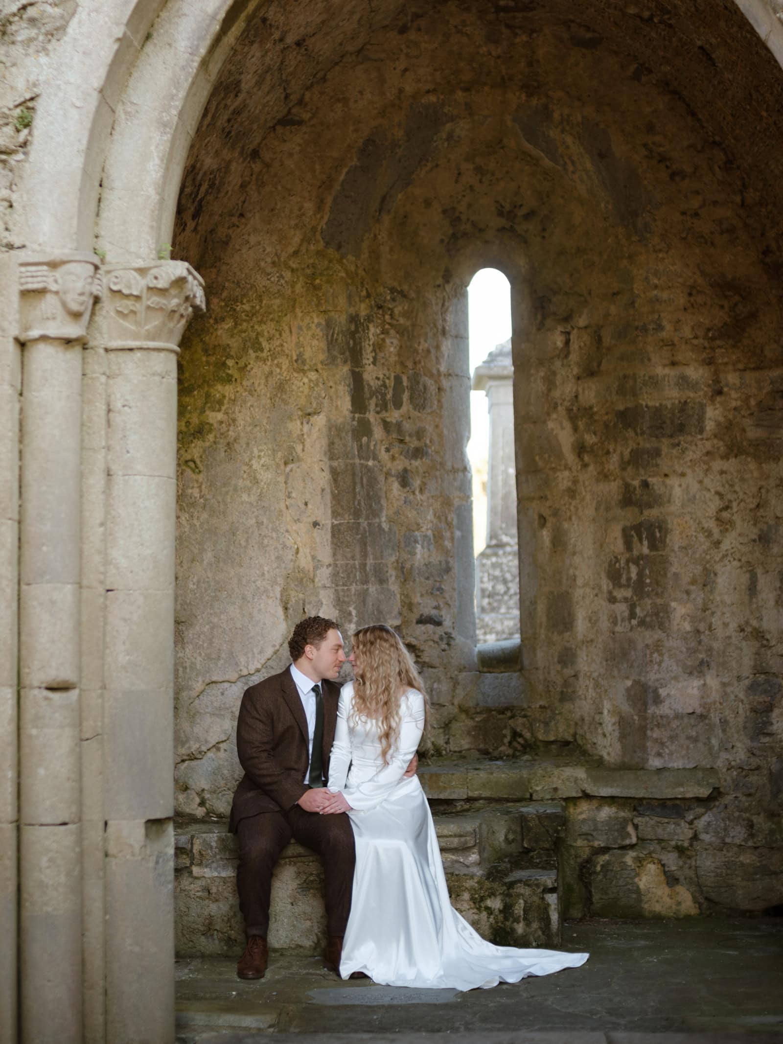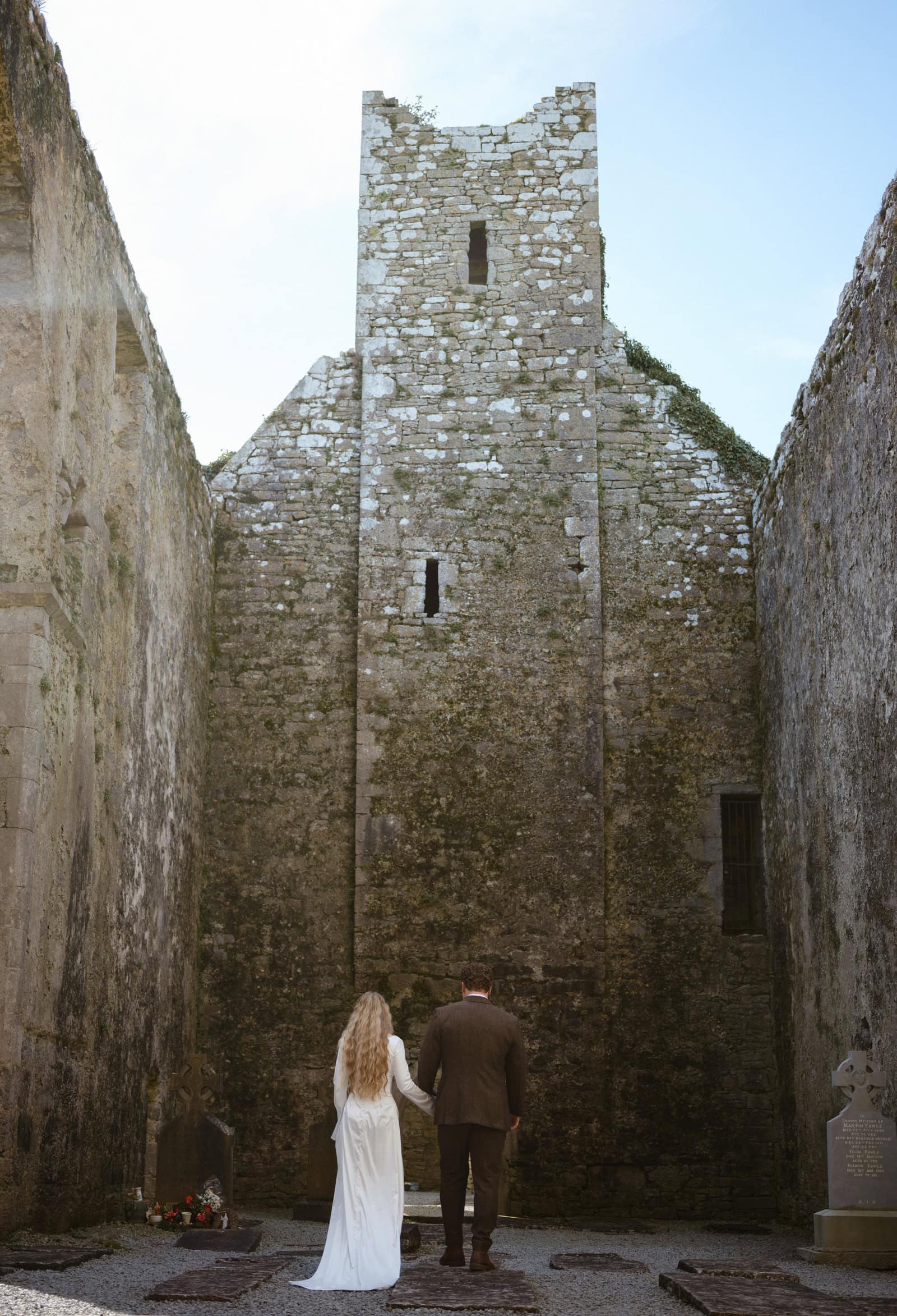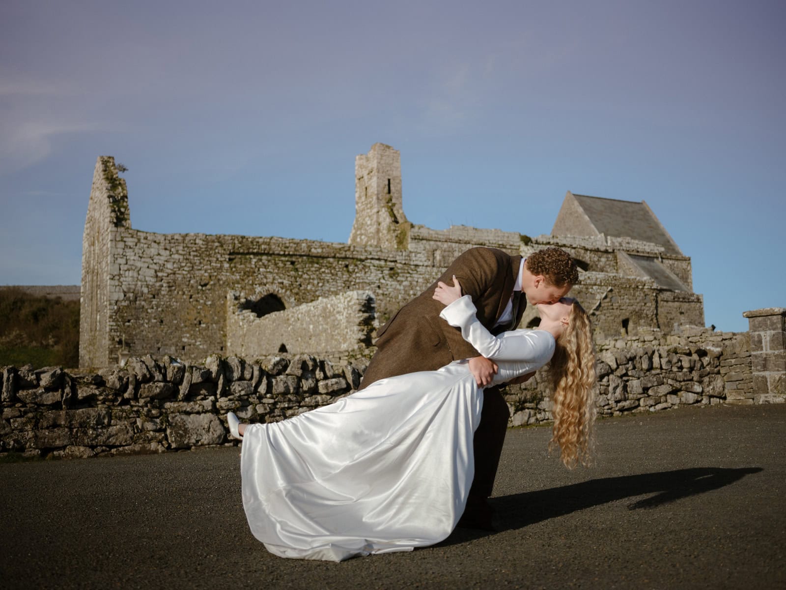 Cali and Sam flew to Ireland from Toronto to say their vows among the historical ruins of Corcomroe Abbey in County Clare. They then had an intimate handfasting ceremony at sunset on the Cliffs of Moher. A real life fairy tale elopement!