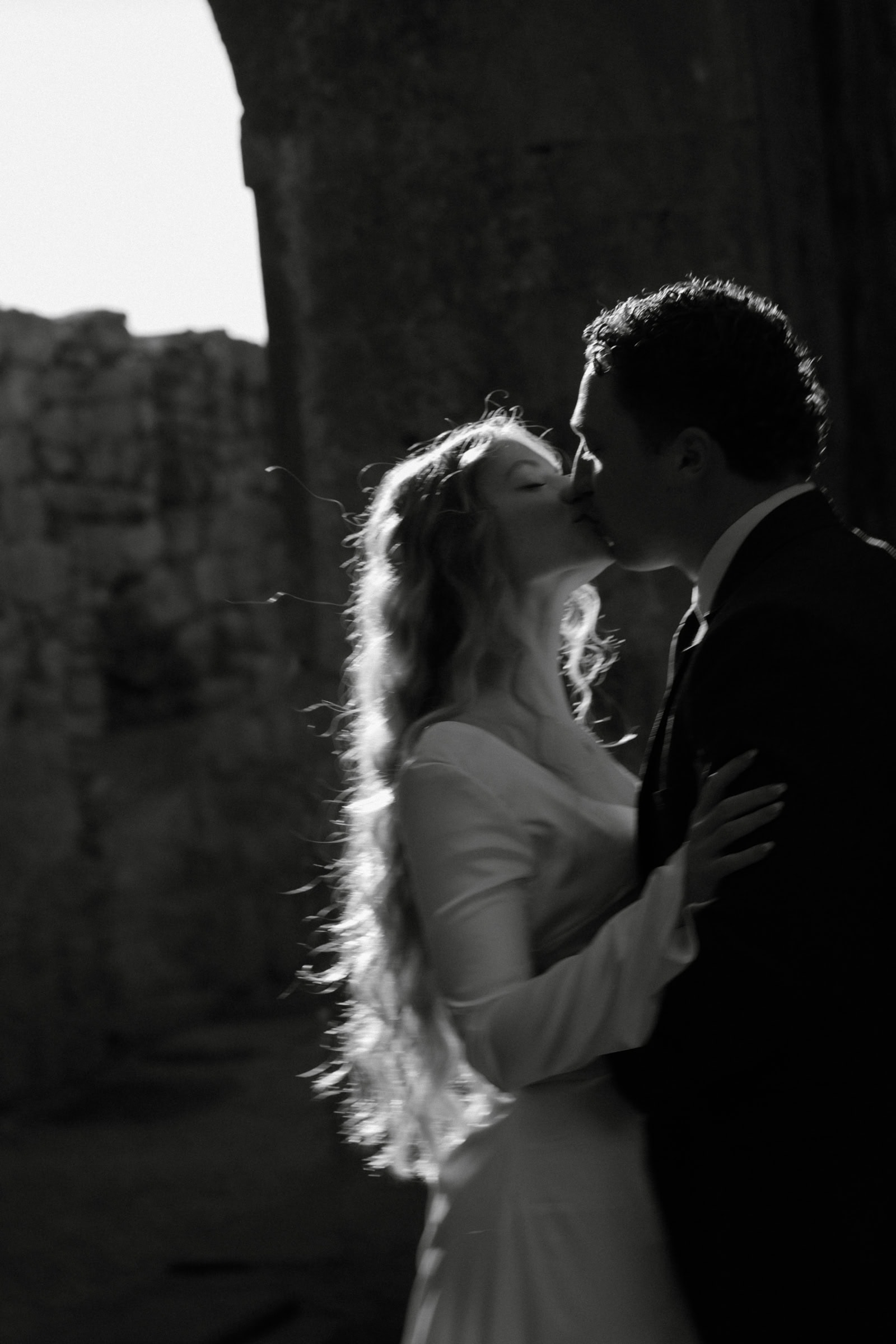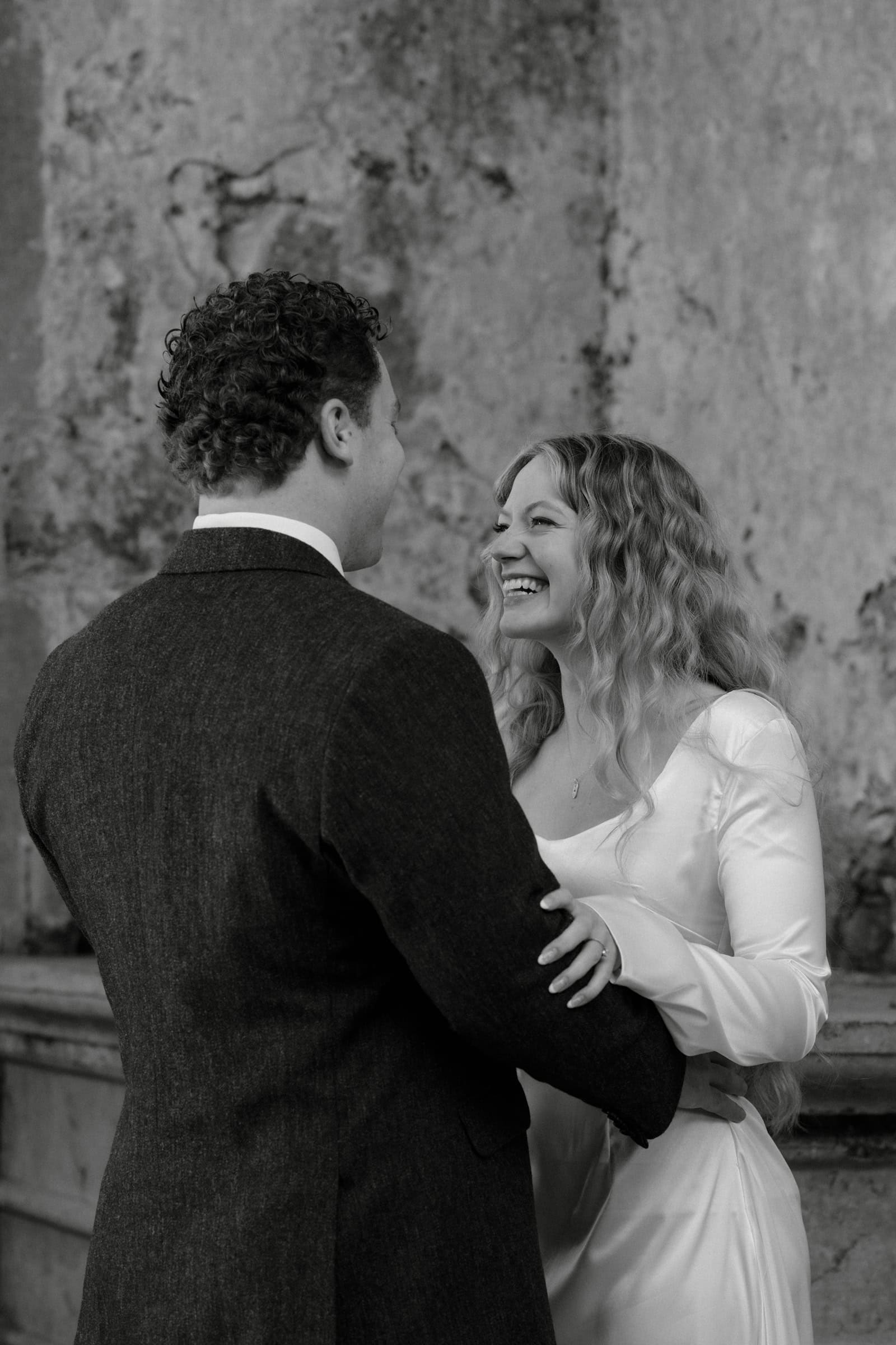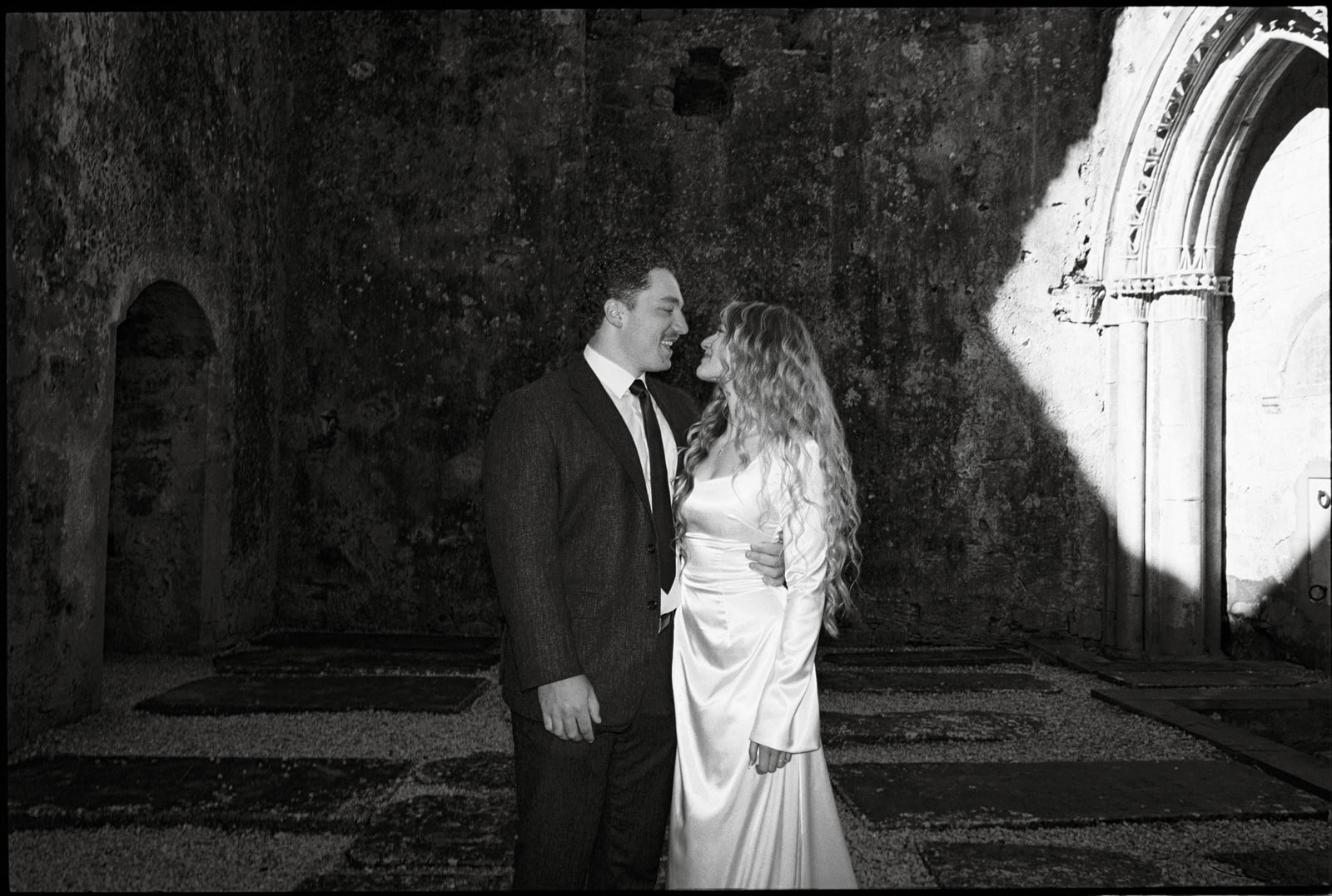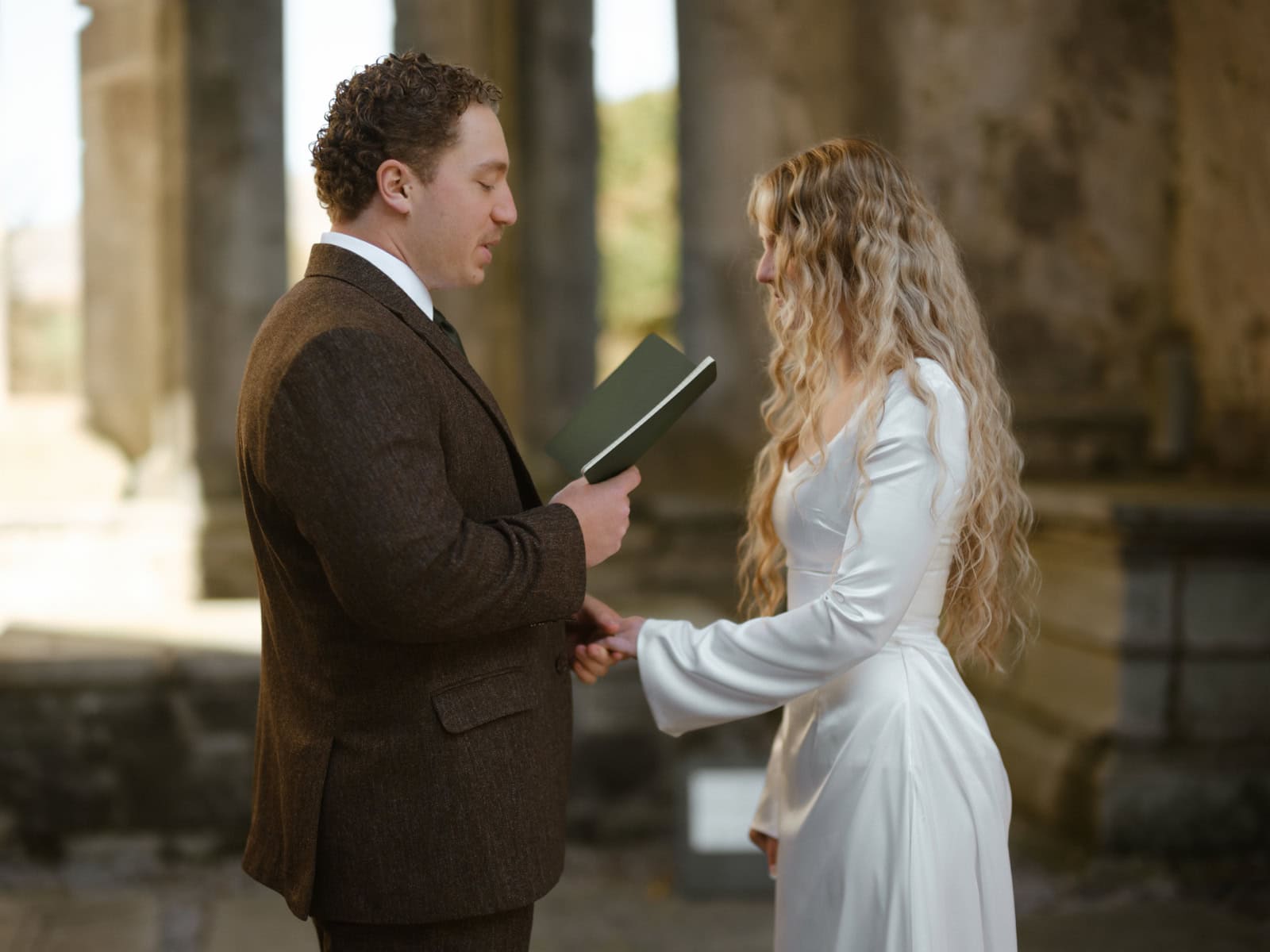 Cali and Sam flew to Ireland from Toronto to say their vows among the historical ruins of Corcomroe Abbey in County Clare. They then had an intimate handfasting ceremony at sunset on the Cliffs of Moher. A real life fairy tale elopement!