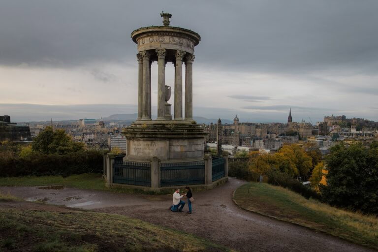 Ieva: For couples who, like Debbie & Dave, are staying in Edinburgh but want to shoot somewhere that has a Highland-esque vibe, the Pentland Hills are the perfect location that is easily accessible from the city (there’s even a bus that runs pretty regularly that gets you almost as close as the car park so you don’t even need a car to get to this location). There is a gorgeous walk around the reservoir with hills surrounding it on both sides. You are pretty much guaranteed to see cute sheep frolicking about as well as possibly spotting wildlife like hares and birds of prey.