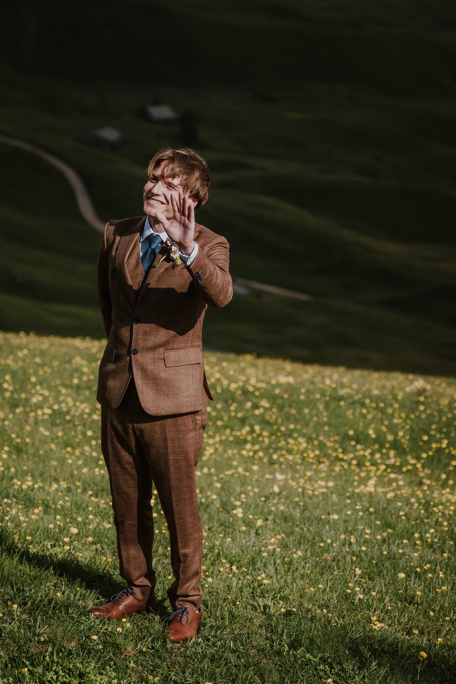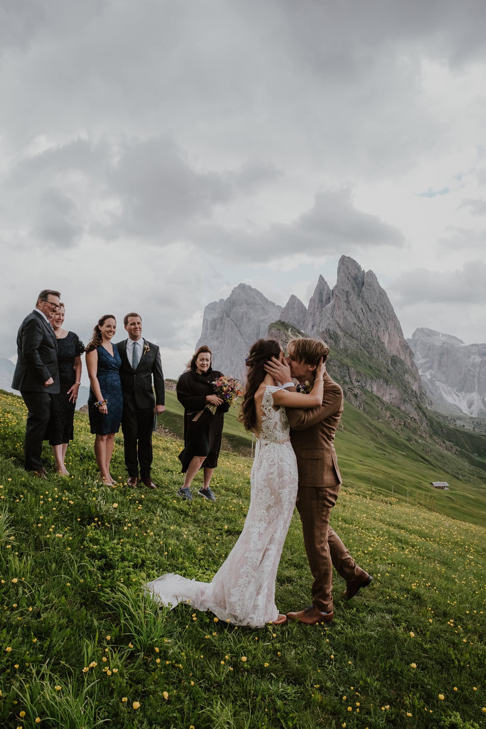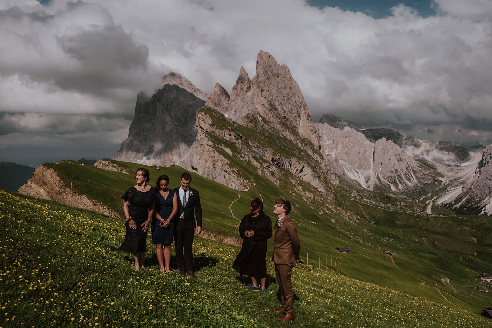 After their emotional ceremony, their family hiked back down to the Sofie Hut for post-ceremony champagne and canapes while Megan & Christian enjoyed the views of Seceda and Val Gardena just a little while longer before joining them.