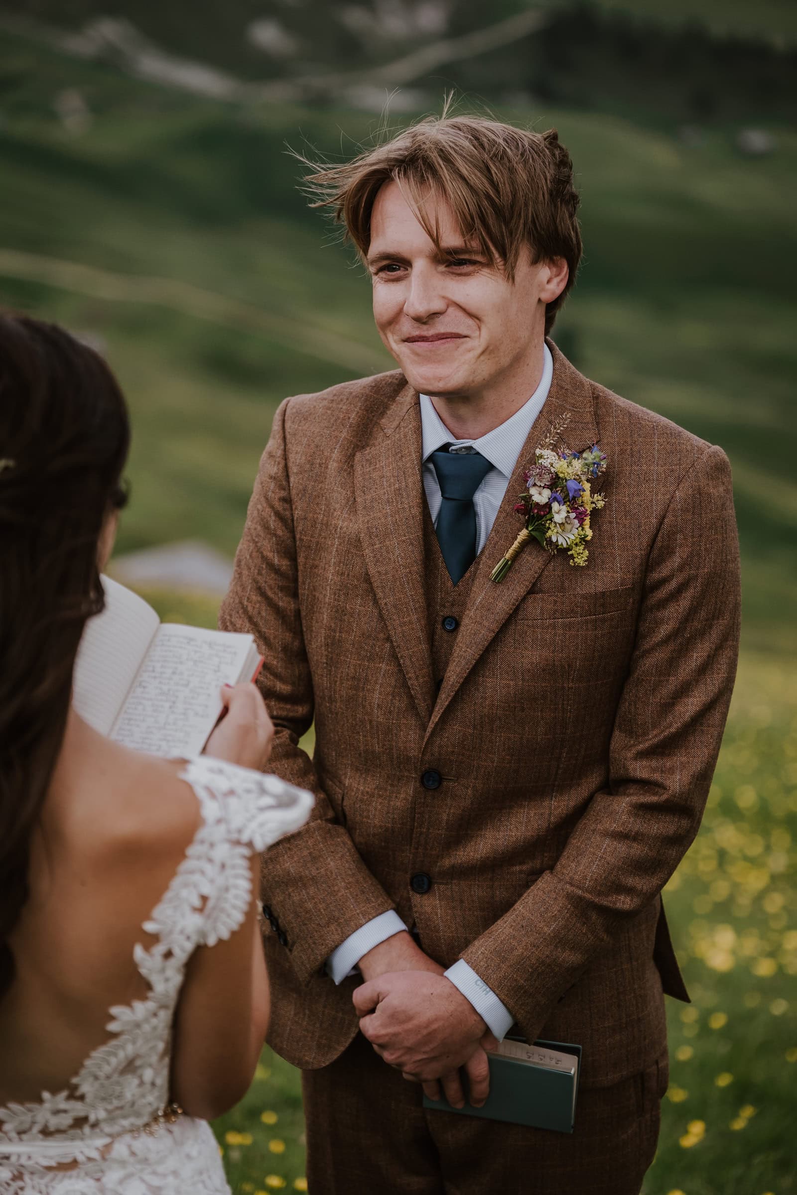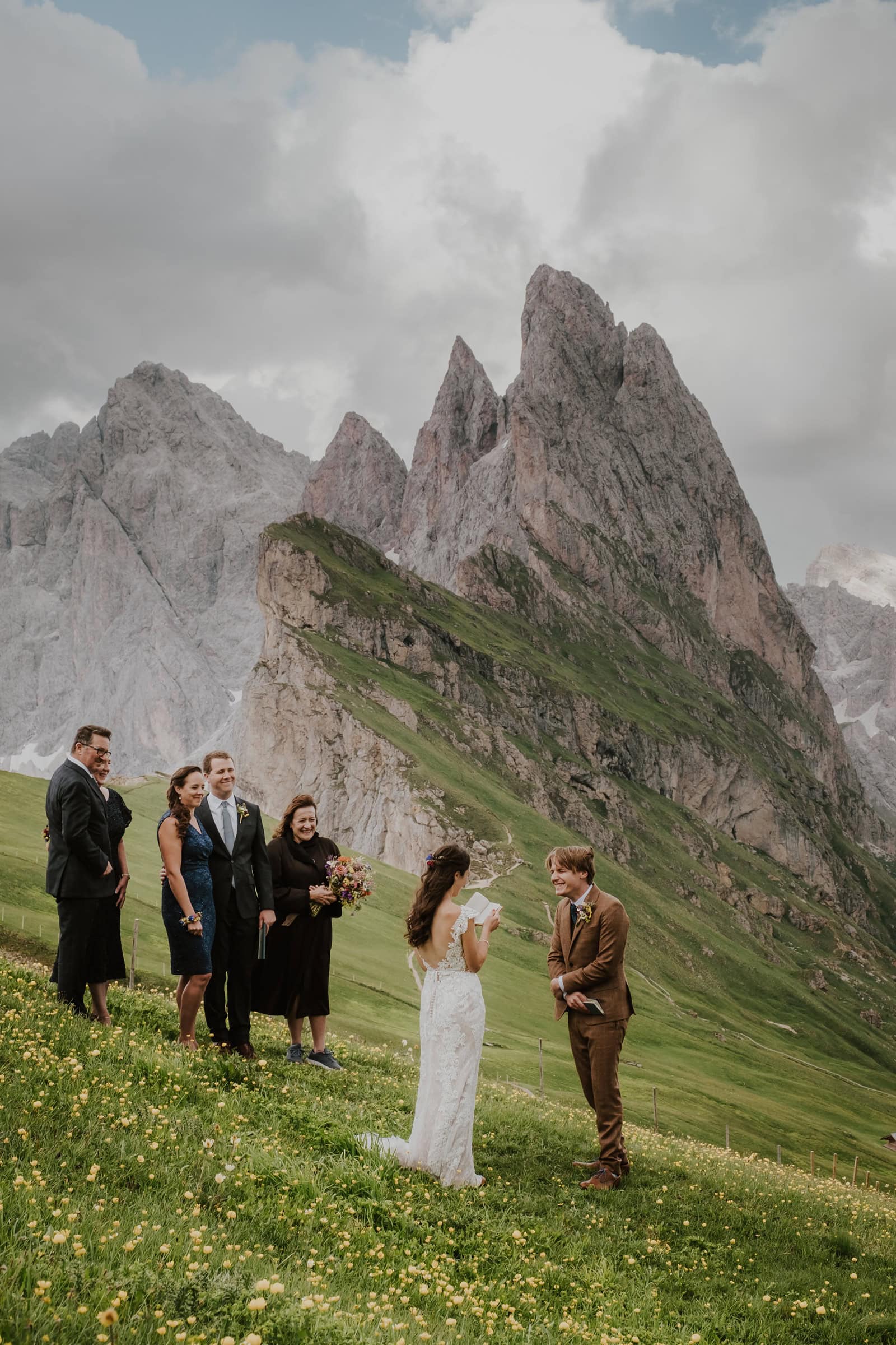 Megan walked down the Seceda ridgeline with her dad to their ceremony location to a recording of her singing & Christian playing guitar to Bob Dylan’s beautiful song Make You Feel My Love. They wrote their ceremony and vows themselves, with every family member reading an except chosen by the couple.