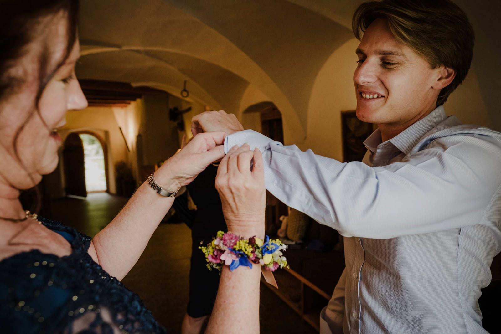 Their elopement day was simple and intimate, as they wanted the ceremony to be the focus of the day, but every detail they did include was perfectly considered, from the alpenhorn wakeup call that Christian organized at 7am in the lodge to the subtle blue lobster details that were a key part in their love story and therefore had to feature in their wedding day.