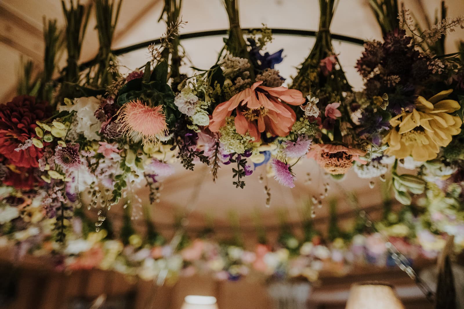 Megan’s bouquet & Christian’s boutonniere were made from wildflowers by local florist Florales Atelier. And when they returned home that night, they found their dinner parlor decorated with the same wildflowers, hung intricately in bunches from the chandelier above the table.