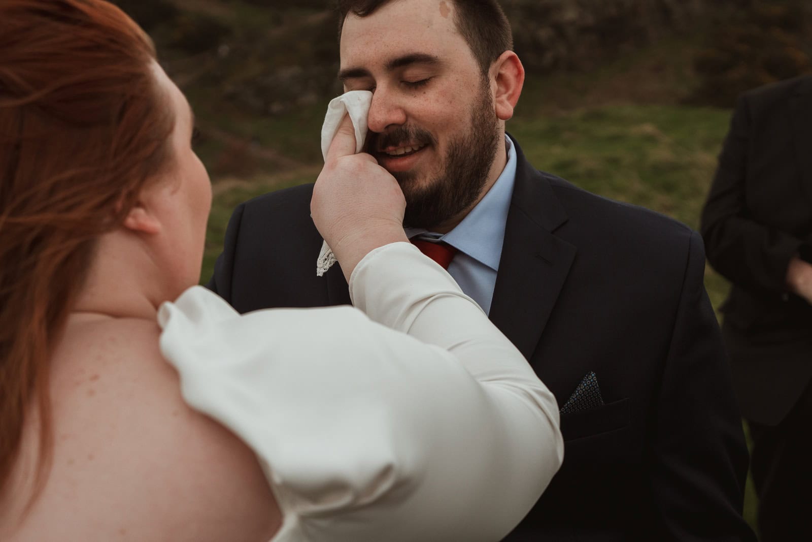 From Tamar: Always work with your photographer to get a time of day that works best for tourist numbers! The biggest example is that during the whole month of August Edinburgh has the Fringe festival which means that Holyrood Park is extremely busy during the daytime. In this case, ceremonies before 9am and after 5pm are the best option. Other than that, I’d say bring hiking boots and a change of clothes because the Scottish weather can be unpredictable!