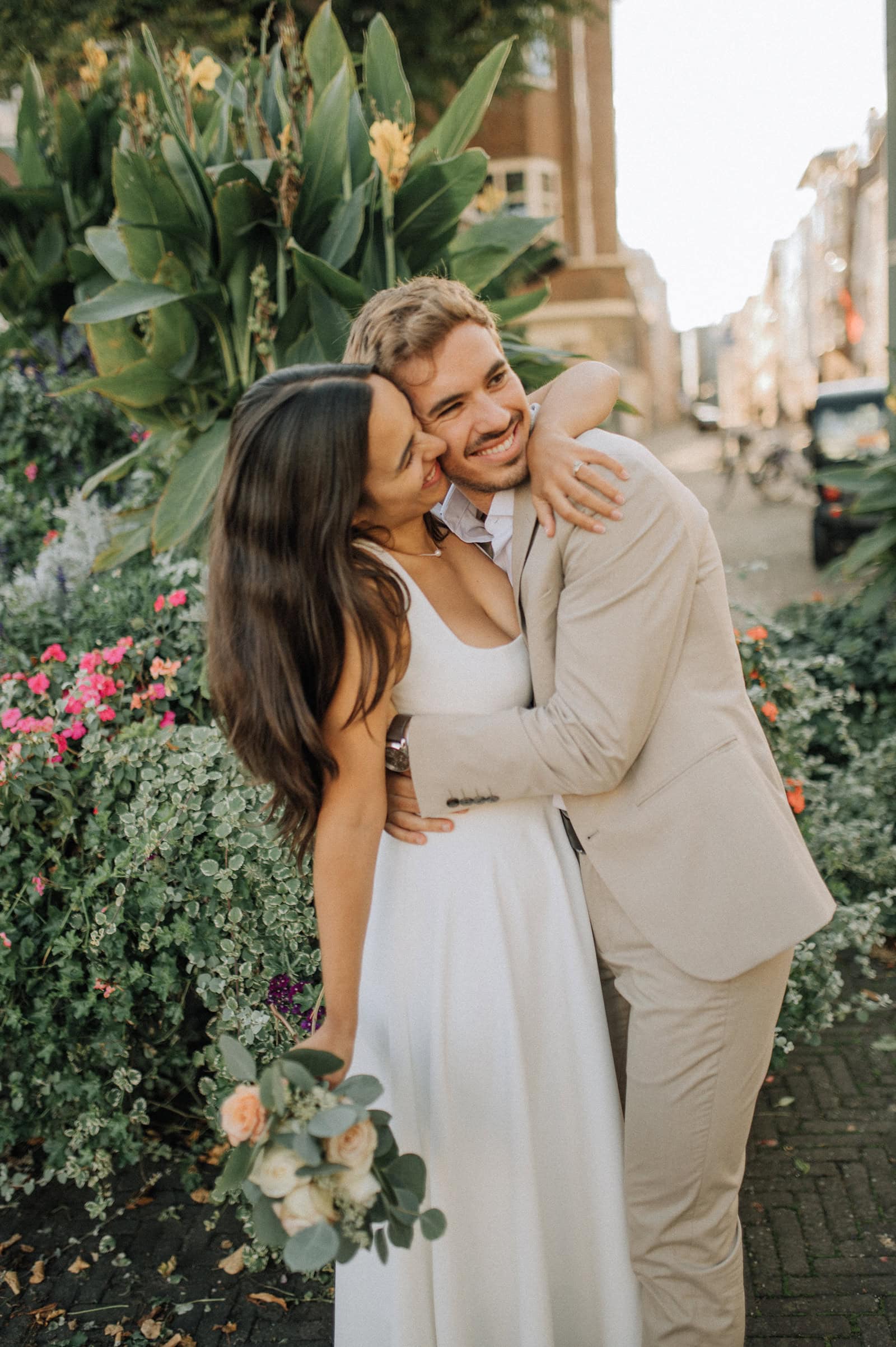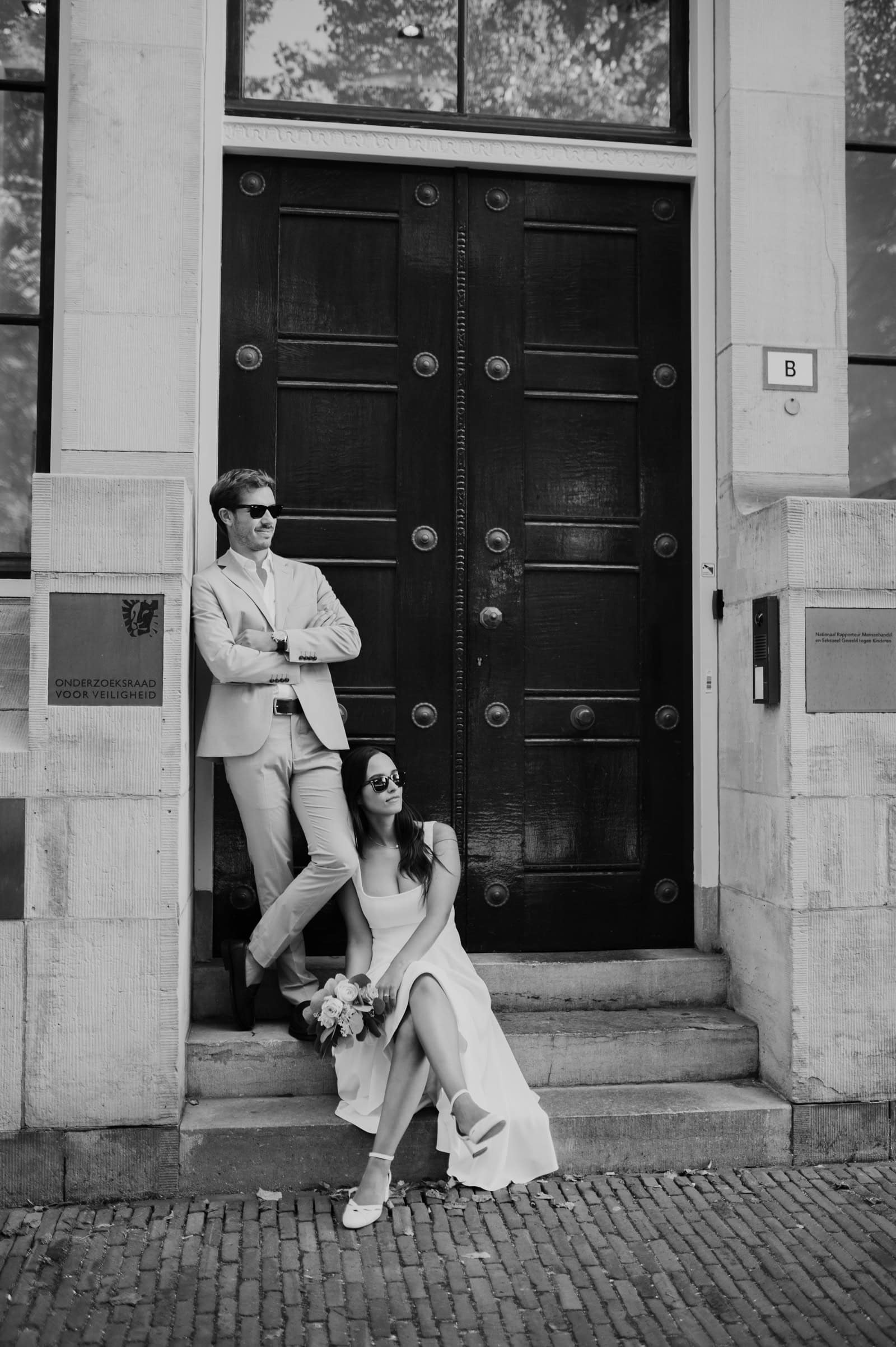 Dress Code Considerations: Given the city’s variable weather, especially in spring and fall, it’s a good idea to have flexible attire. Light layers and chic outerwear are recommended, particularly for the bride and groom. Incorporating sunglasses into your look is both practical and stylish, especially for outdoor shoots. Comfortable shoes are a must if you plan to stroll through the cobbled streets around the Binnenhof.