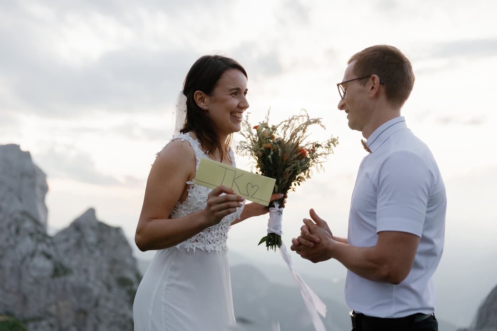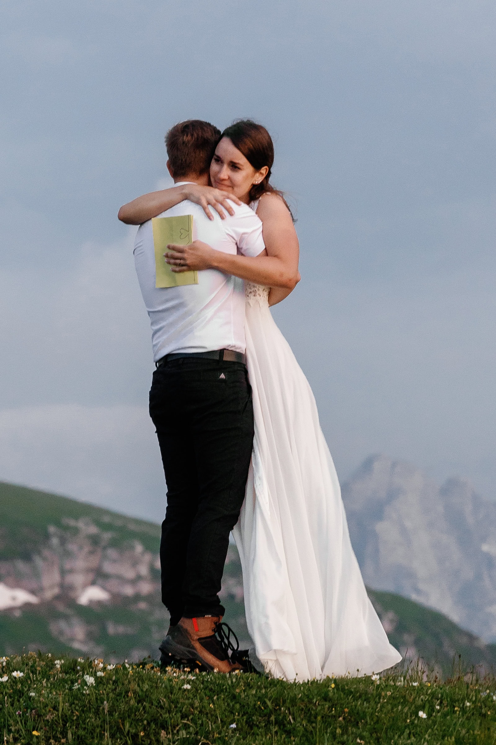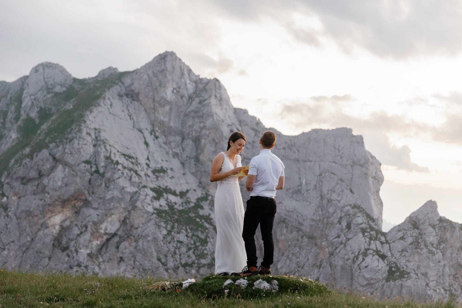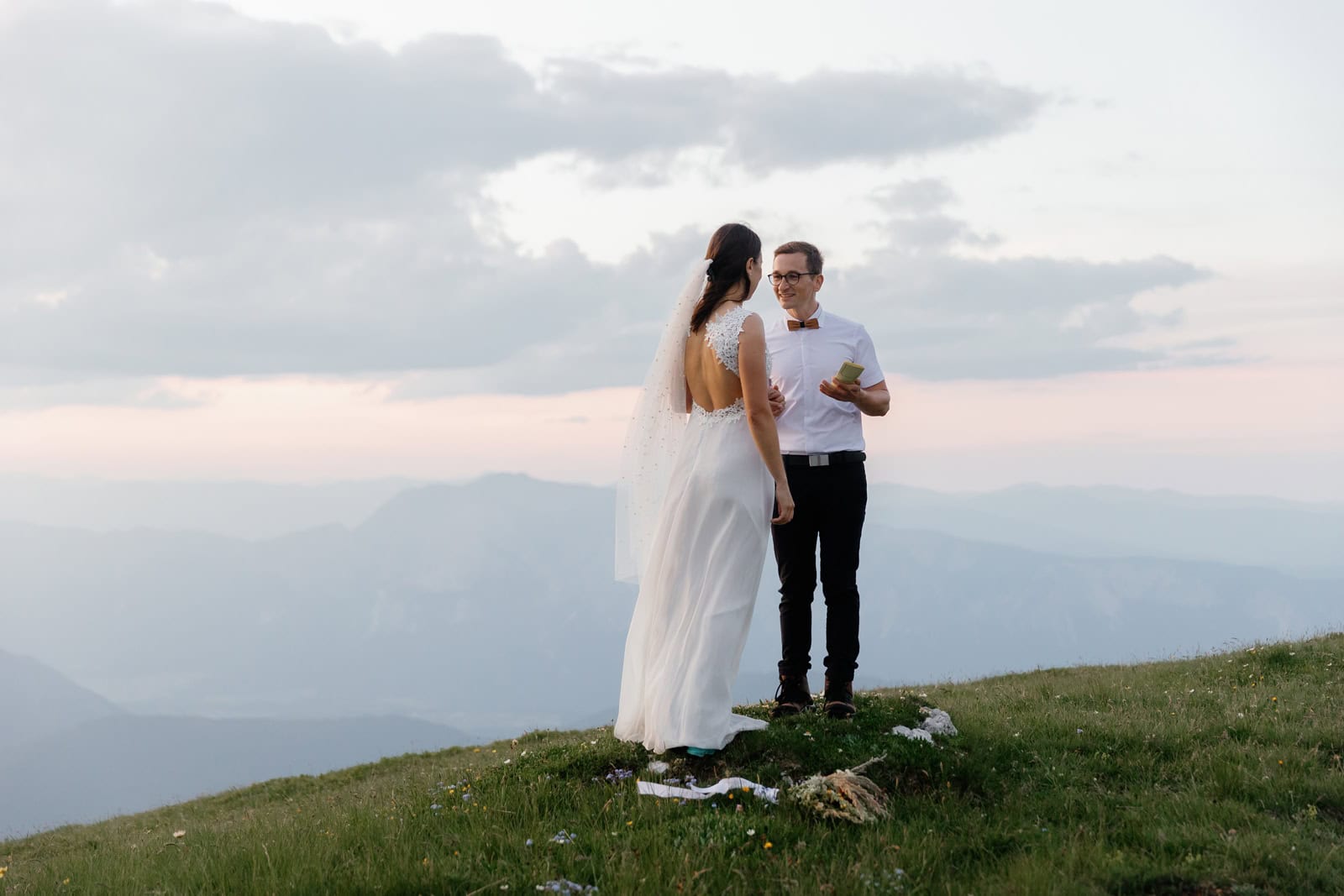 They chose a few spots that fell just right for a quick photo session. Just after the sun set behind the highest mountain on Italian side, Klara & Tadej exchanged their hand written vows. After a celebratory champagne the day came to an end.