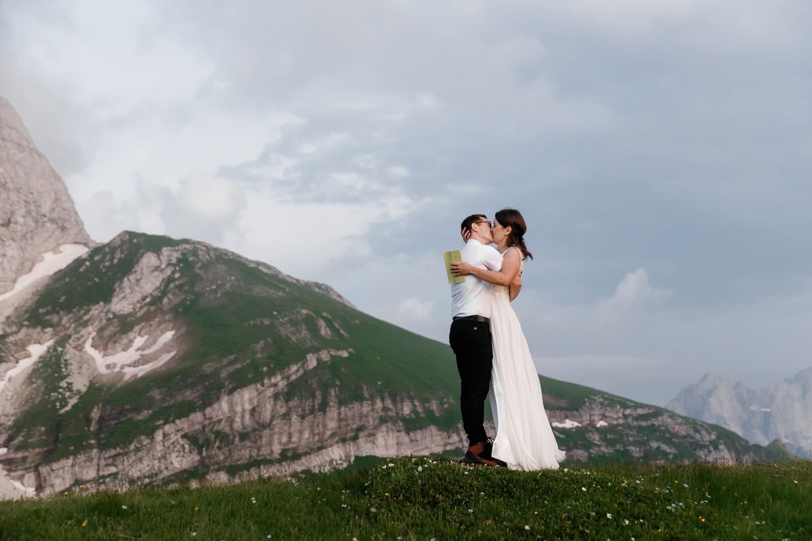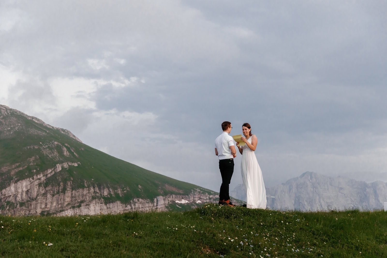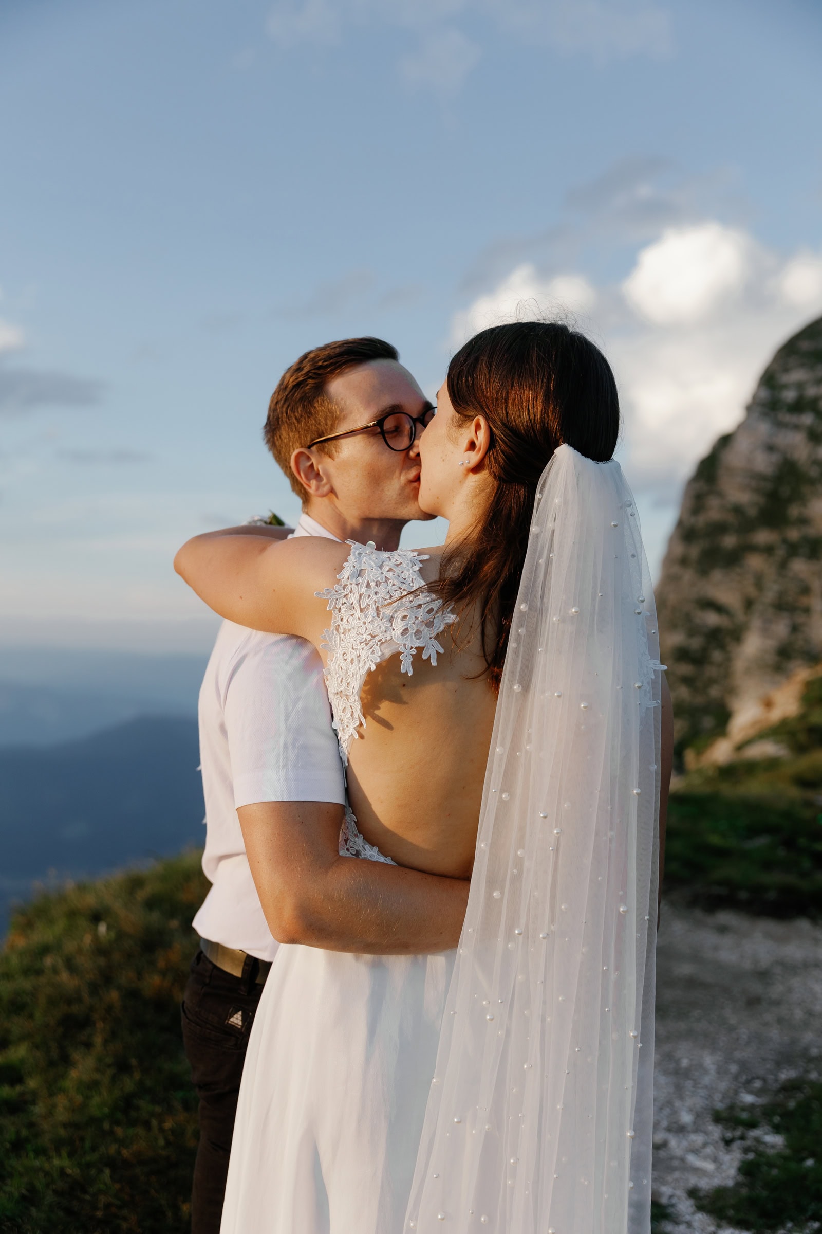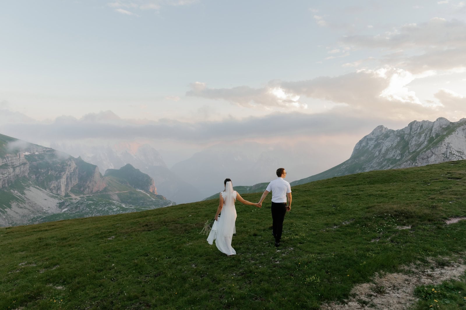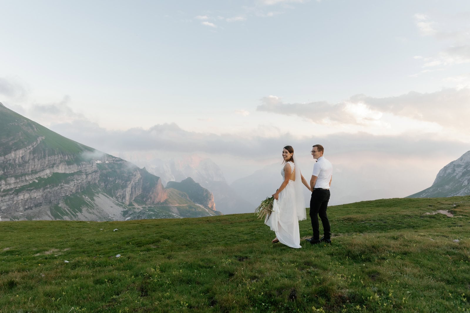 They chose a few spots that fell just right for a quick photo session. Just after the sun set behind the highest mountain on Italian side, Klara & Tadej exchanged their hand written vows. After a celebratory champagne the day came to an end.