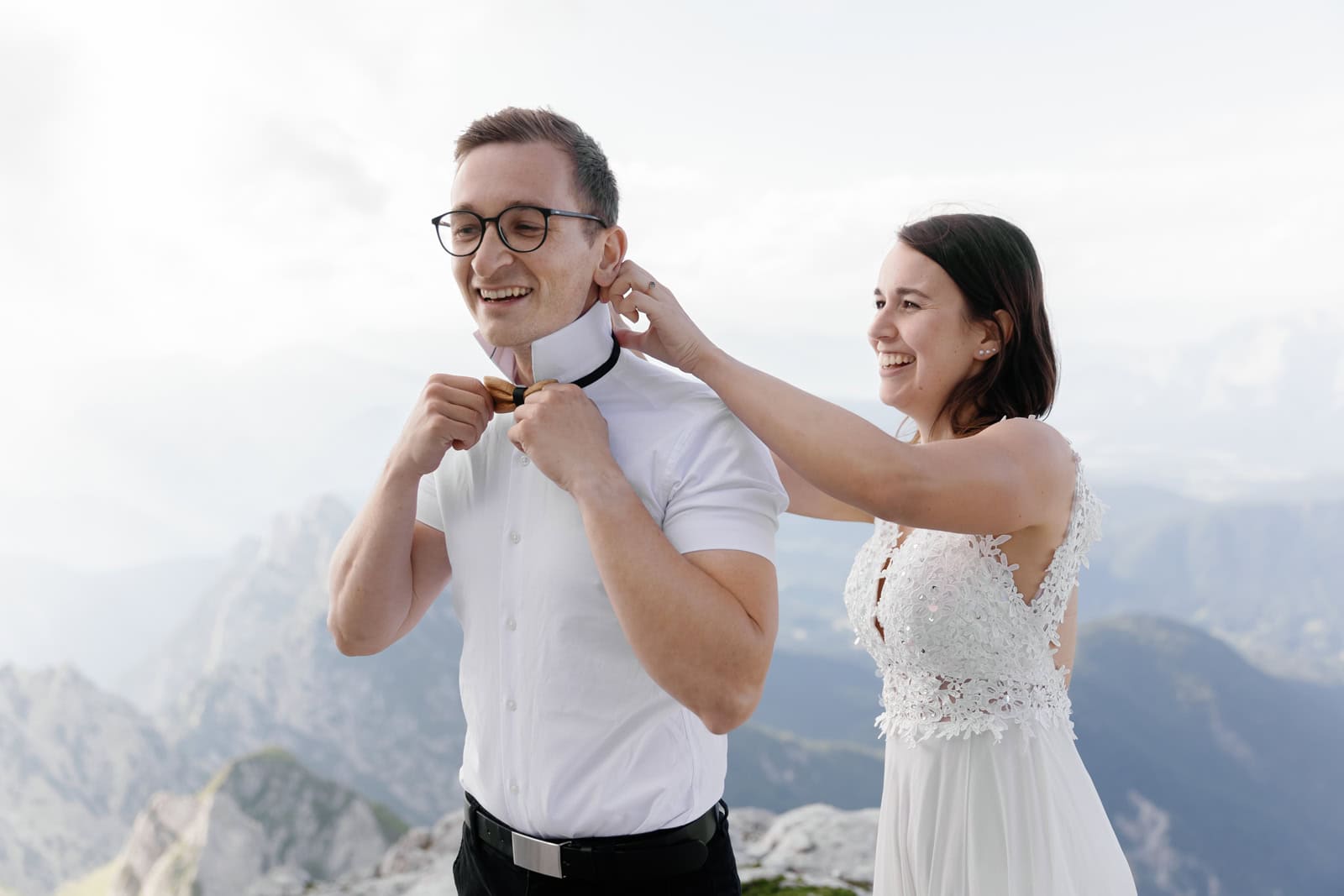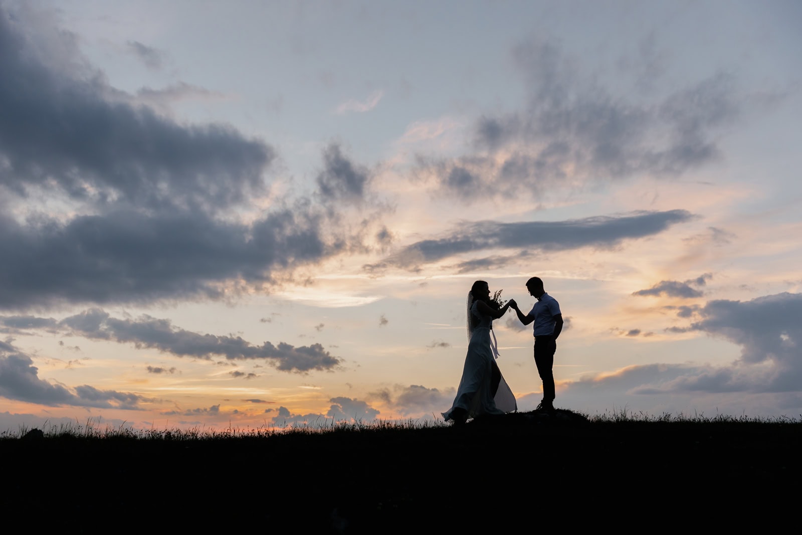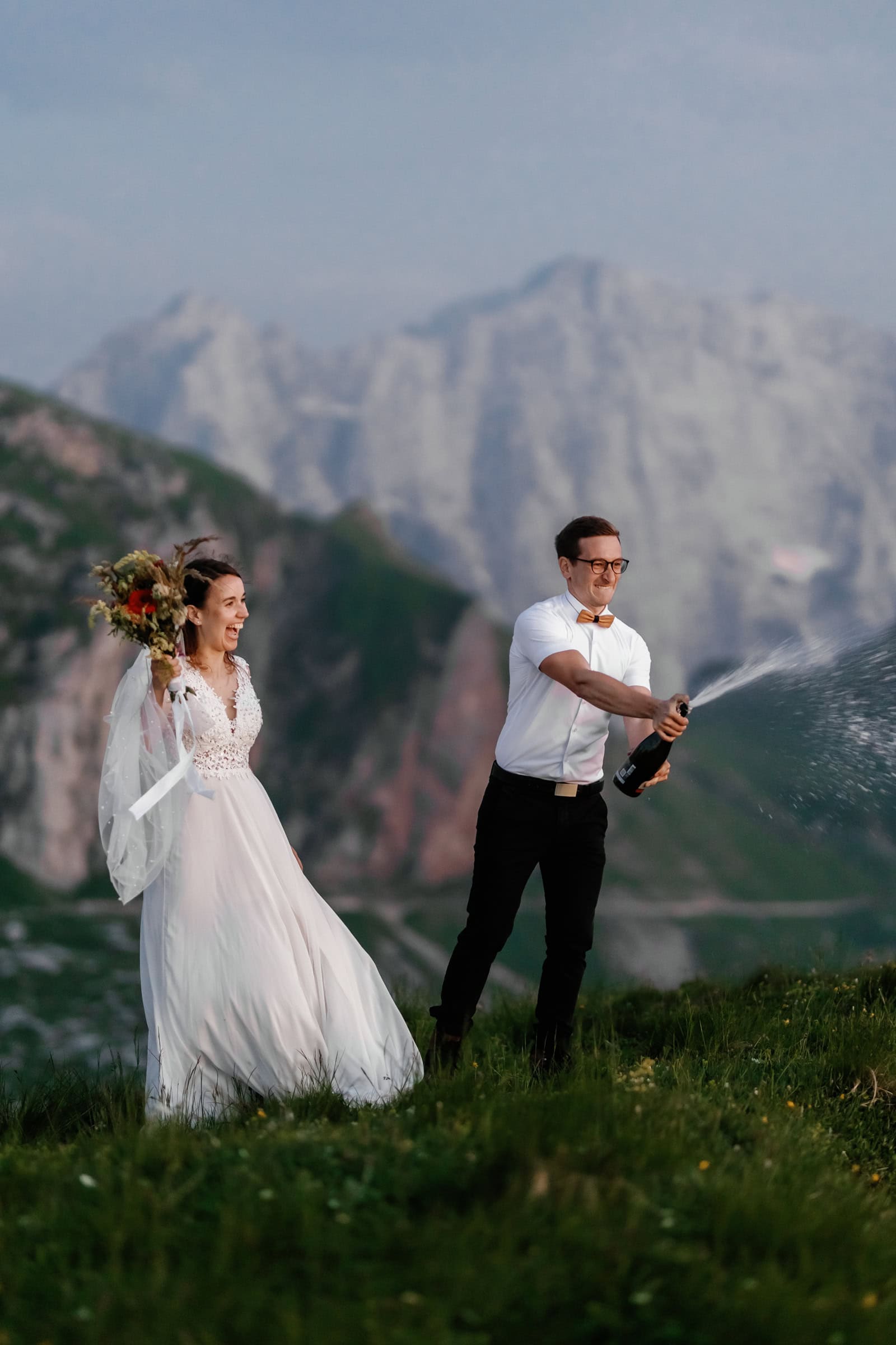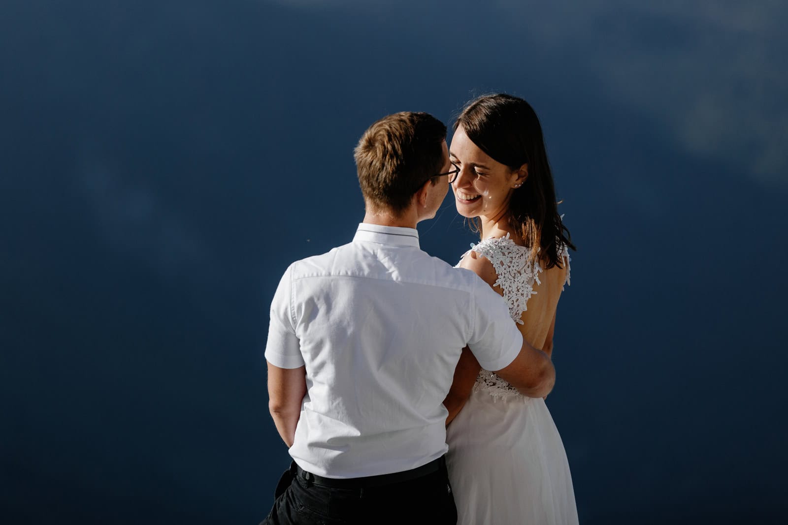 They chose a few spots that fell just right for a quick photo session. Just after the sun set behind the highest mountain on Italian side, Klara & Tadej exchanged their hand written vows. After a celebratory champagne the day came to an end.