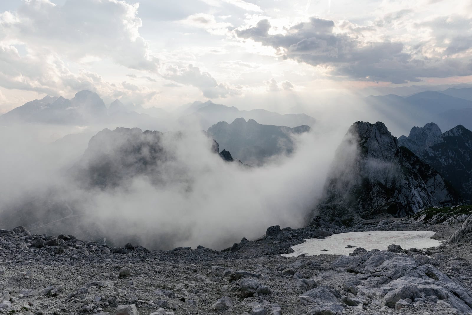 They drove to Mangart pass and headed towards the top of the mountain.
