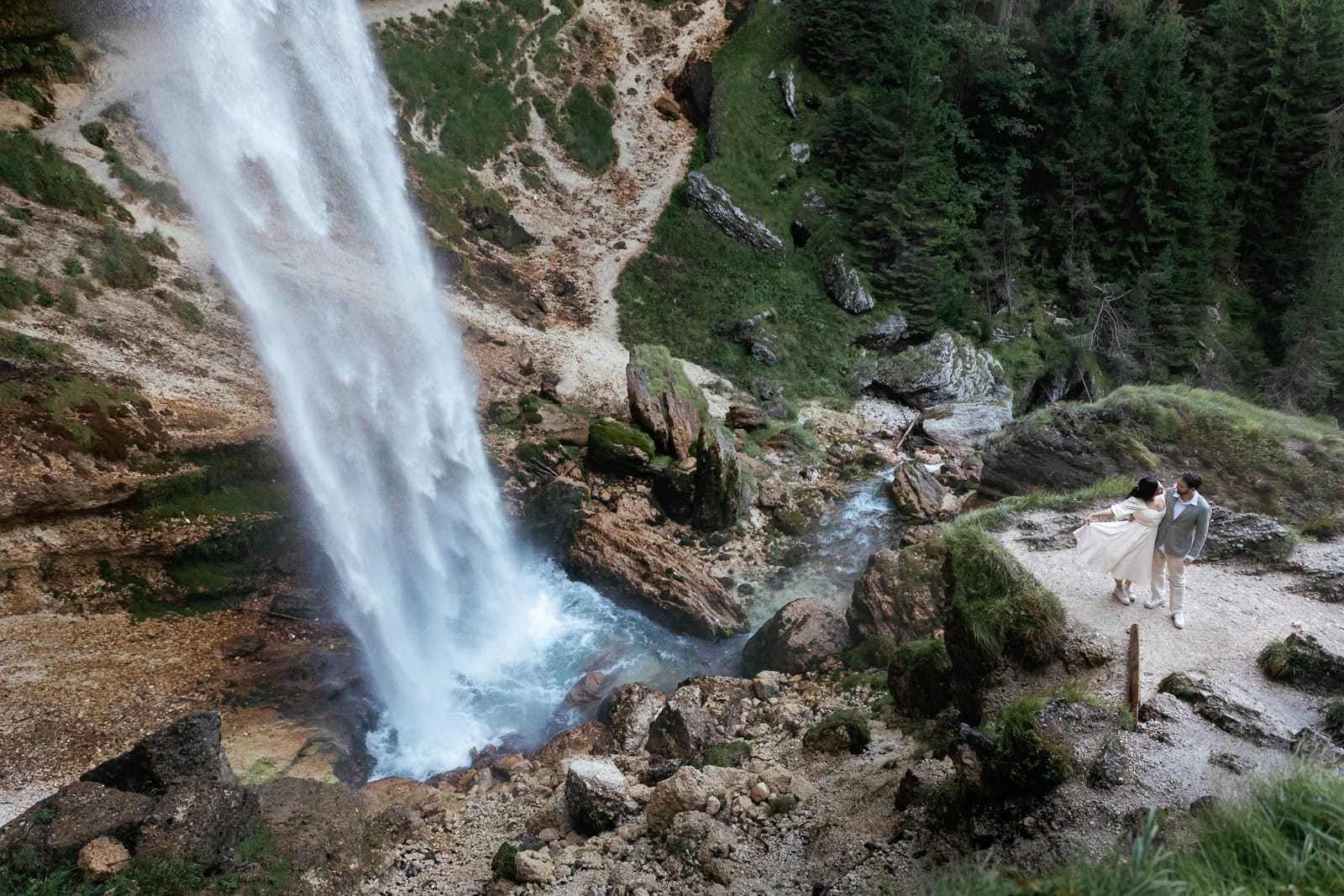 Luma & Luke had a courthouse wedding in their home town in Germany and wanted to take photos somewhere in nature. They decided to do so during their honeymoon in beautiful Slovenia. They headed to Triglav Valley with a stunning waterfall for a magical photo shoot with their photographer Anja.