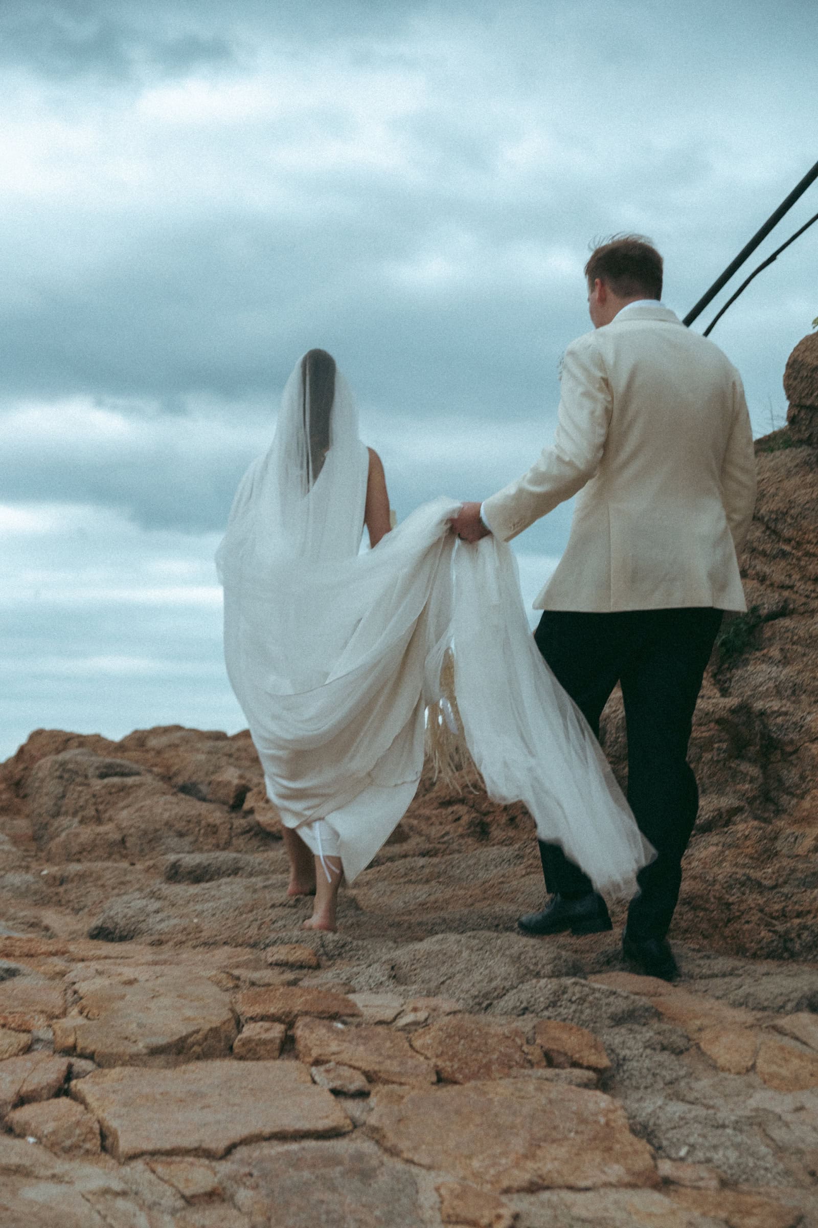 Shayla & Daniel: We had personal vows. We chose the spot ourselves and picked the decoration. We did a small ritual during the ceremony where we poured sand from the beach into a vessel, symbolizing the experiences, moments and thoughts we’ve shared — and those still to come. Just above it, a pair of seashells, to protect it all.