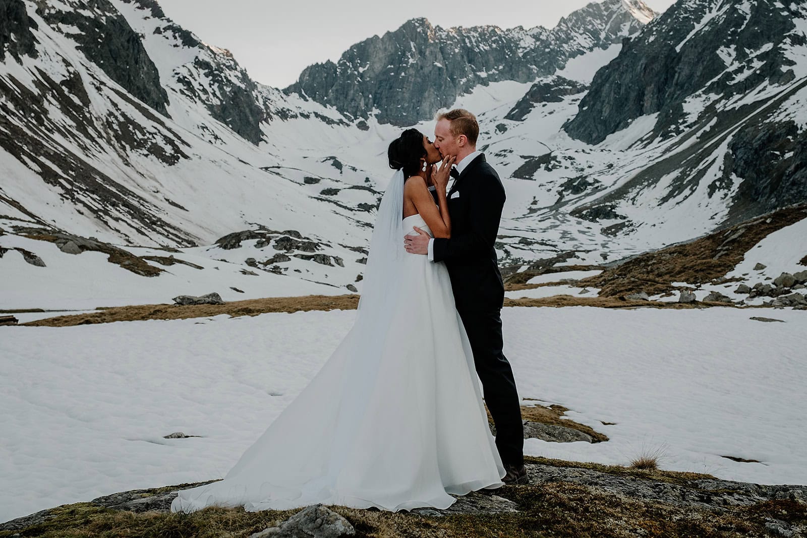 While many couples who dream of a hiking elopement hope the trails are snow-free, for Ben & Sai, they wanted the opposite. They wanted to elope in summer, but still have that high-altitude feel. They wanted high mountains, glaciers and snow. However, their chosen elopement date ended up having too much snow, which lead to a last minute pivot and a brand new location – that turned out to be perfect!