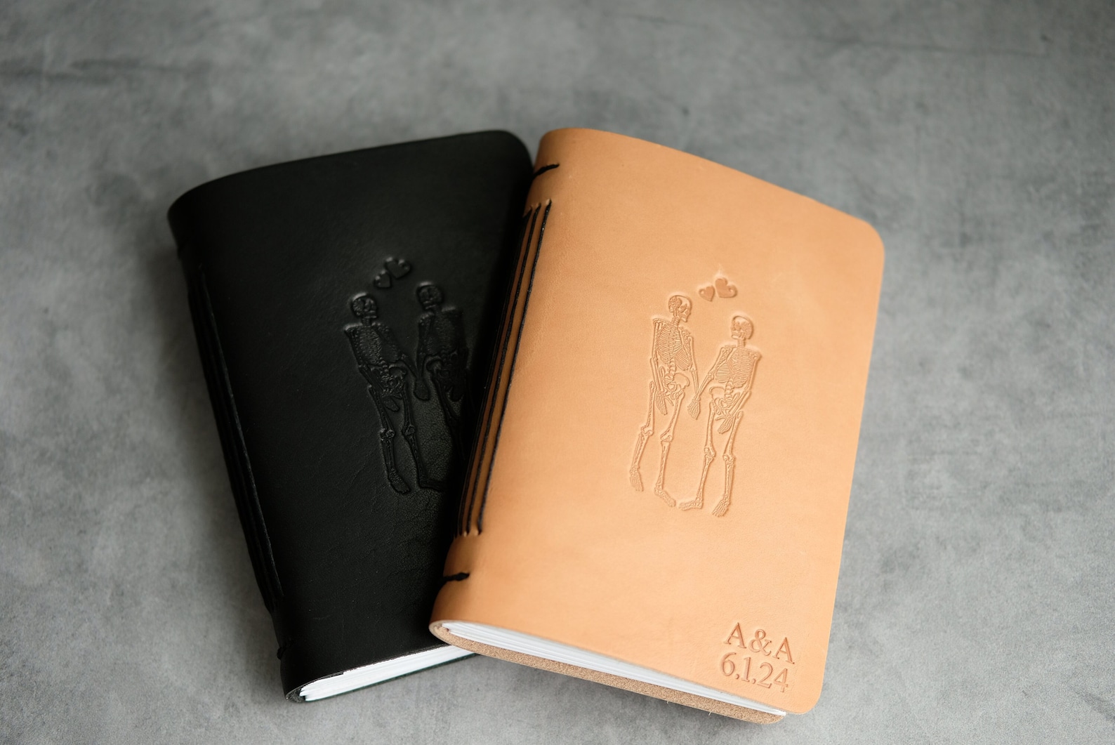 These gothic vow books are crafted from top-grain leather, meaning they’ll stick around longer than most guests. Each book is handmade and personalized with your names or initials. No two are the same. An independent artist dreamed up the skeleton design, adding a touch of gothic flair without being over the top. It’s perfect for couples who want their wedding to stand out, you know, the ones who aren’t afraid to be a little different.