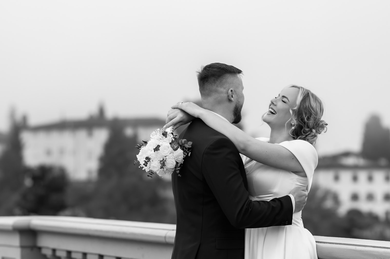 Monika & Riho: Originally we were planning an intimate elopement in Estonia (we are from Estonia). We contacted Eva (she is also from Estonia) and started discussing her capturing our day. But she helped us dream bigger and suggested eloping in Italy. This sounded so perfect, but we couldn’t narrow down to one location. There are so many wonderful places and different sceneries and then we just decided to do them all 😀 Big city views in Florence, narrow street and smaller Italian town views in Pienza, hills of Tuscany and mountain-lake views at lake Garda.
