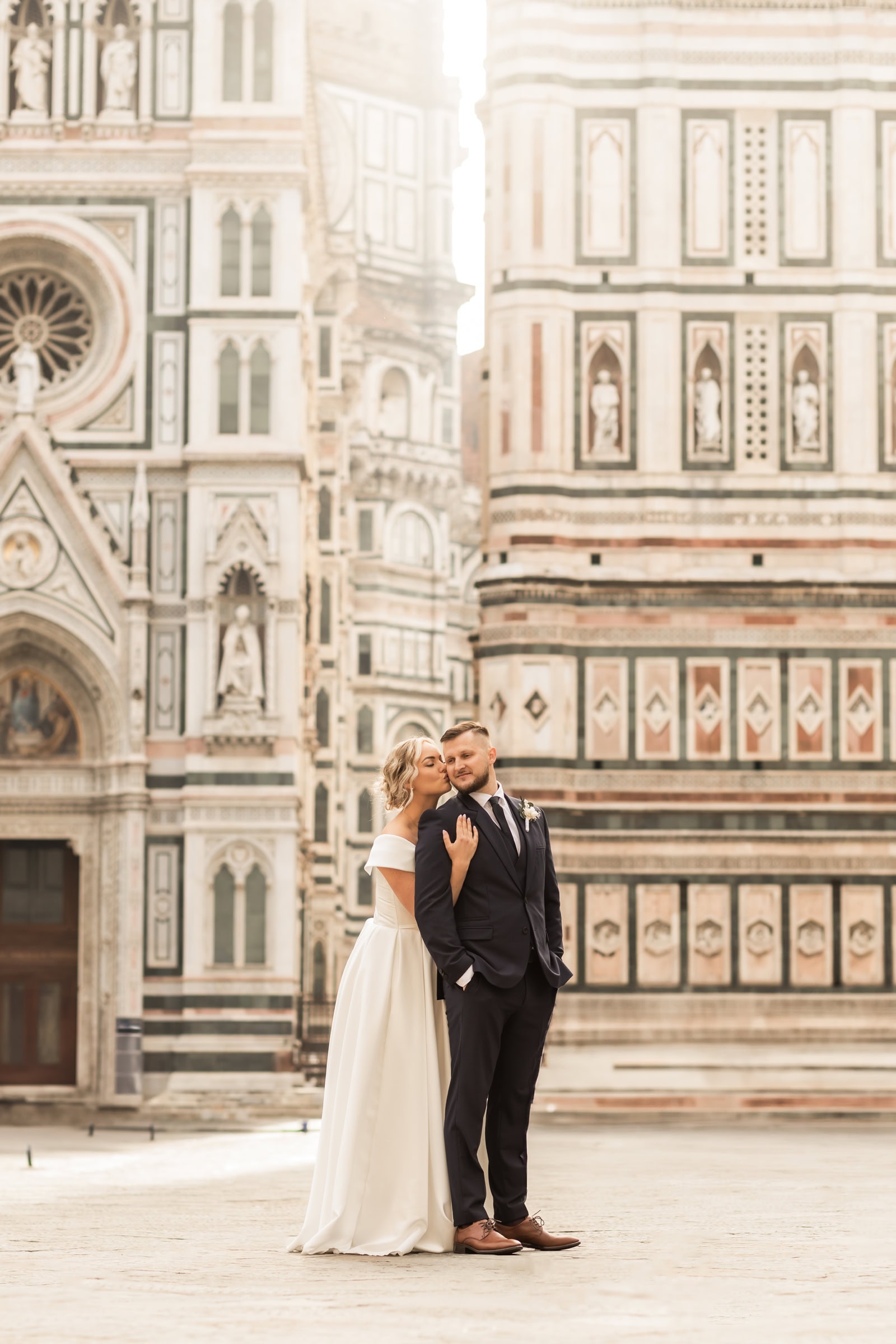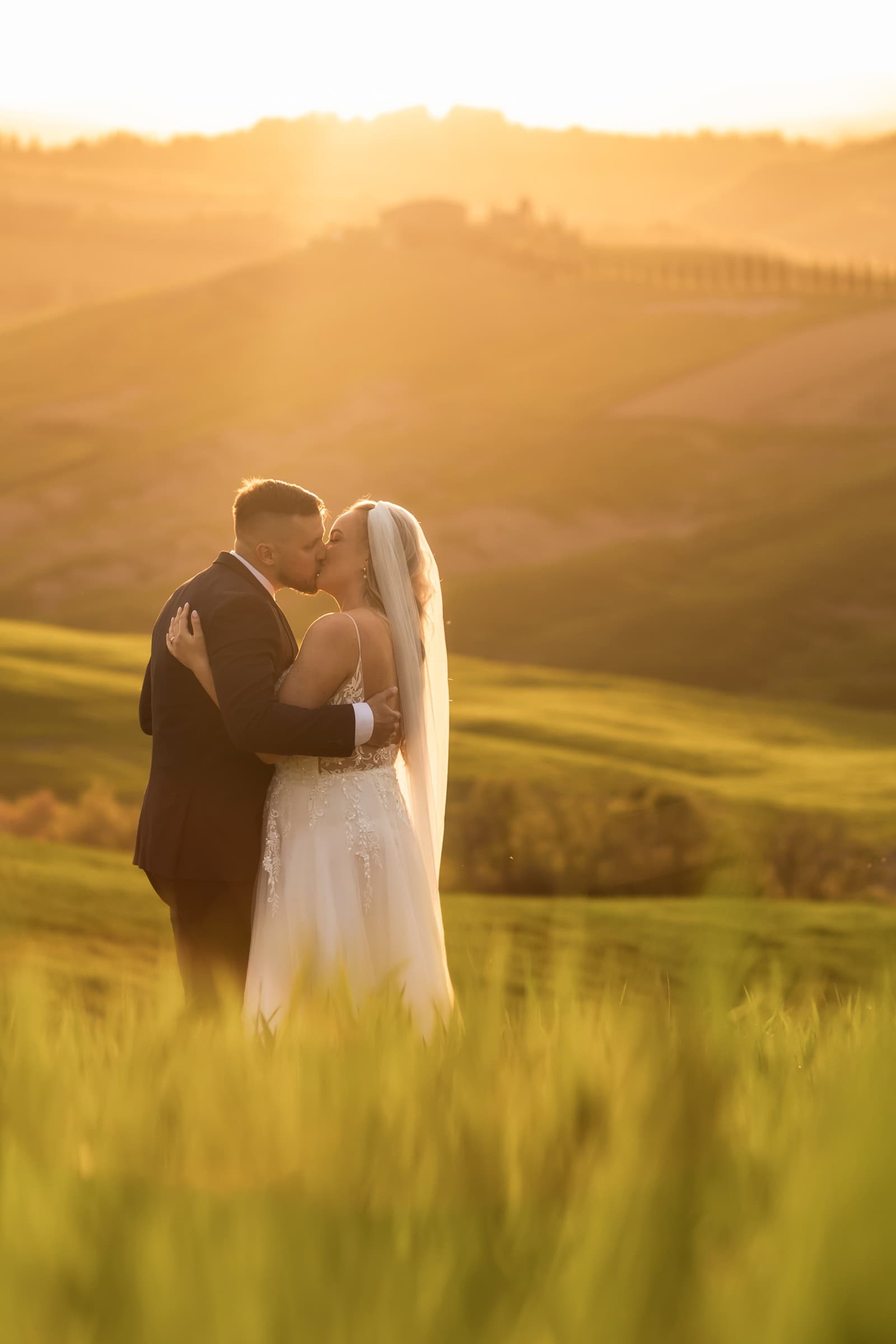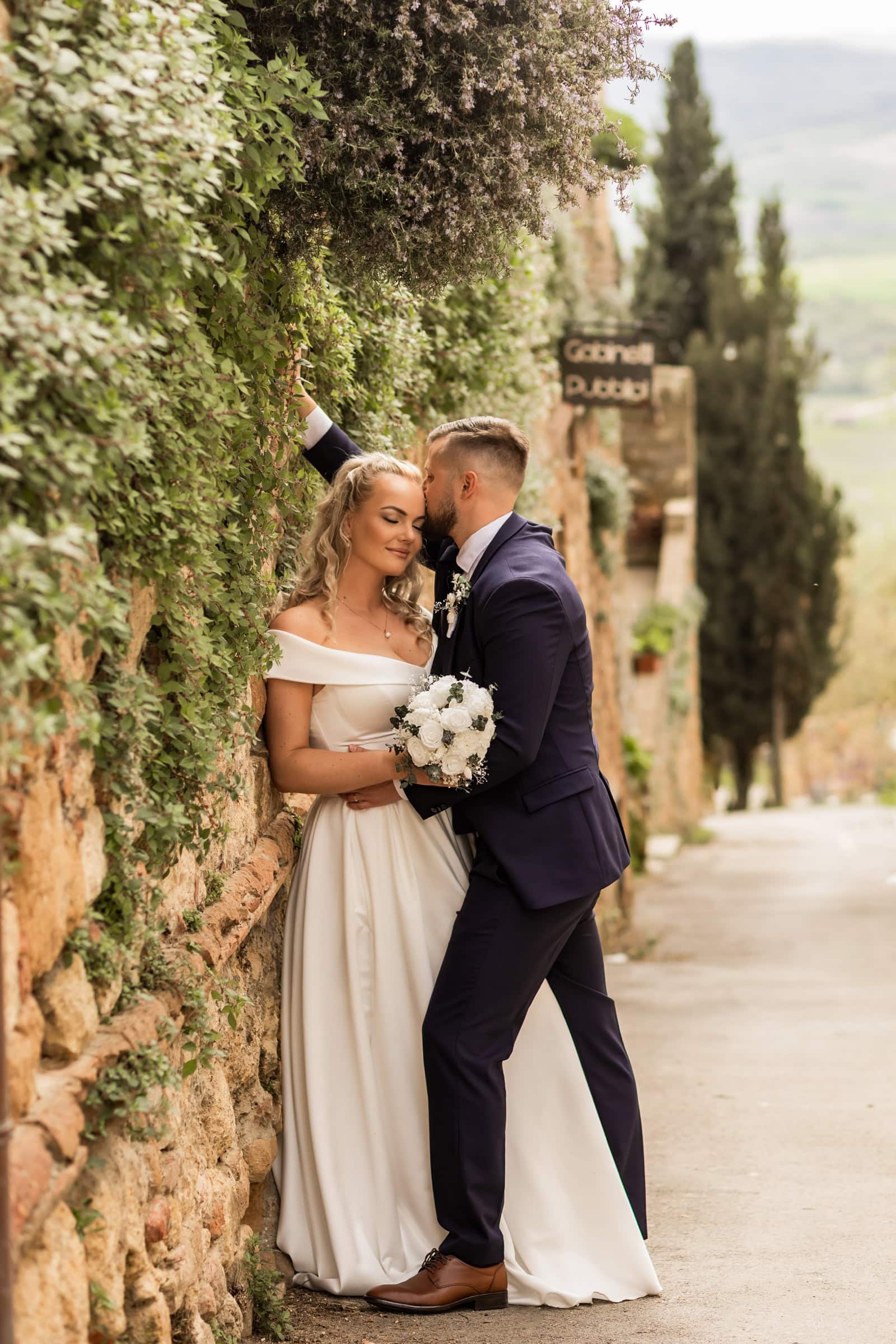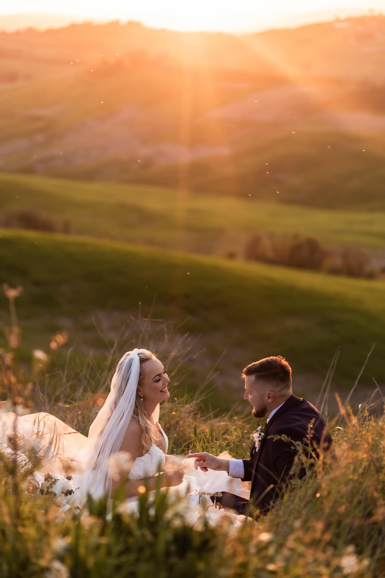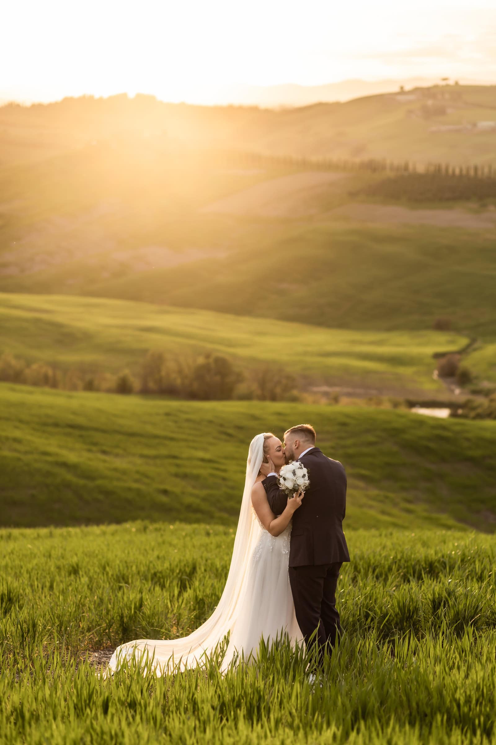 They started at sunrise in Florence, where they took portraits in front of the Dome and then started wandering around on the cobblestone streets. They had an ice cream break that somehow turned into face smearing 🙂 They moved on to a little beautiful town in Tuscany called Pienza, where they also had lunch. Having pizza in Italy in their wedding gown was one thing they definitely wanted to do! Then they explored cypress streets in Tuscany, visited the spot where one of the last scenes of Gladiator was filmed (groom’s special wish) and finished the day with the most beautiful sunset ceremony in Tuscany. A lot of tears, a lot of emotions and AMAZING views!