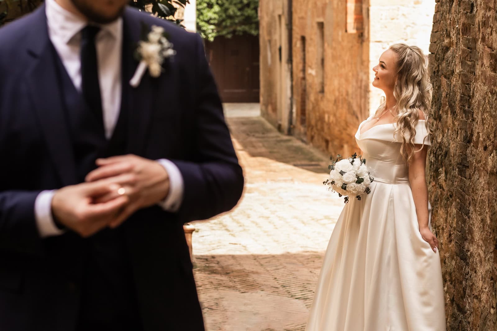 Monika & Riho: I guess the ones our photographer recommended: doing everything within a week and early in the morning to avoid crowds. Our elopement was on the weekend though since our date options were limited due to babysitting arrangements. On the weekend in some of the locations you could see a lot of people (e.g. Pienza during the day).