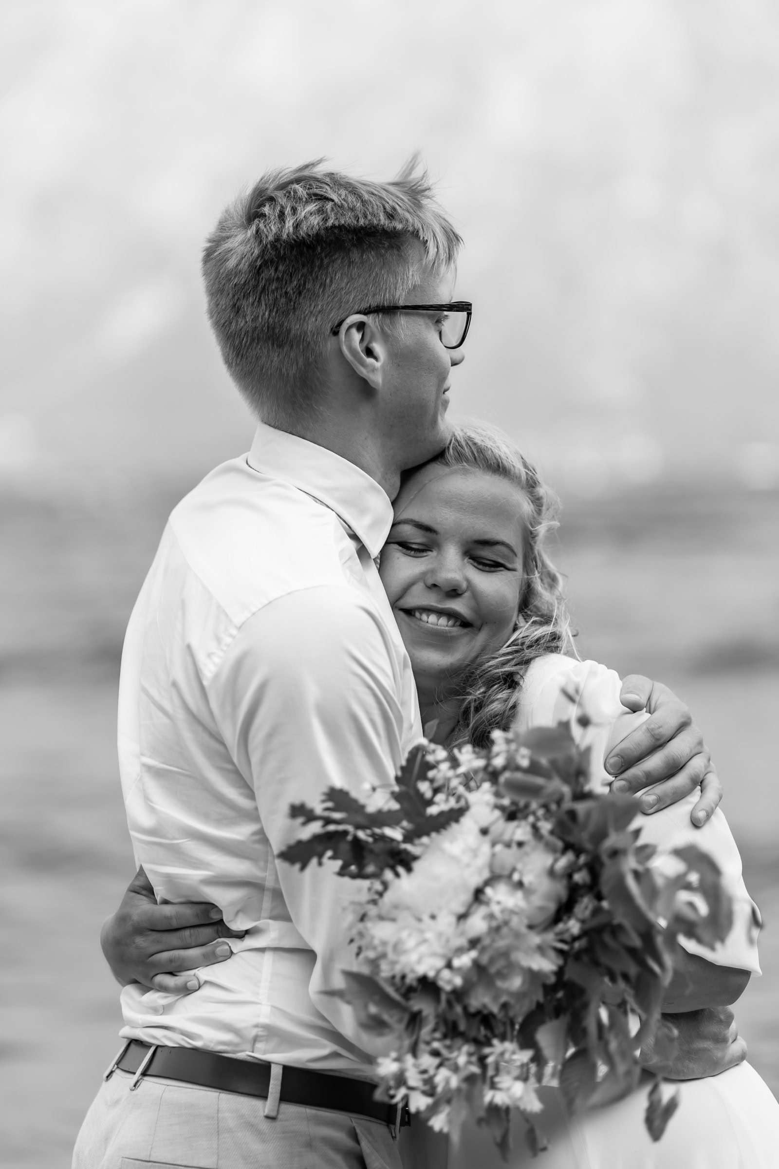 Kaisa & Laur: I guess we would recommend to make the day true to you, even if it is unusual. We decided to have our ceremony while standing inside the lake since water plays a significant role in our relationship. We also asked Eva to take us on a hike she has not been to before herself to have more adventures. We goofed around a lot because that is just how we are. This made it possible for the day to be really OURS.