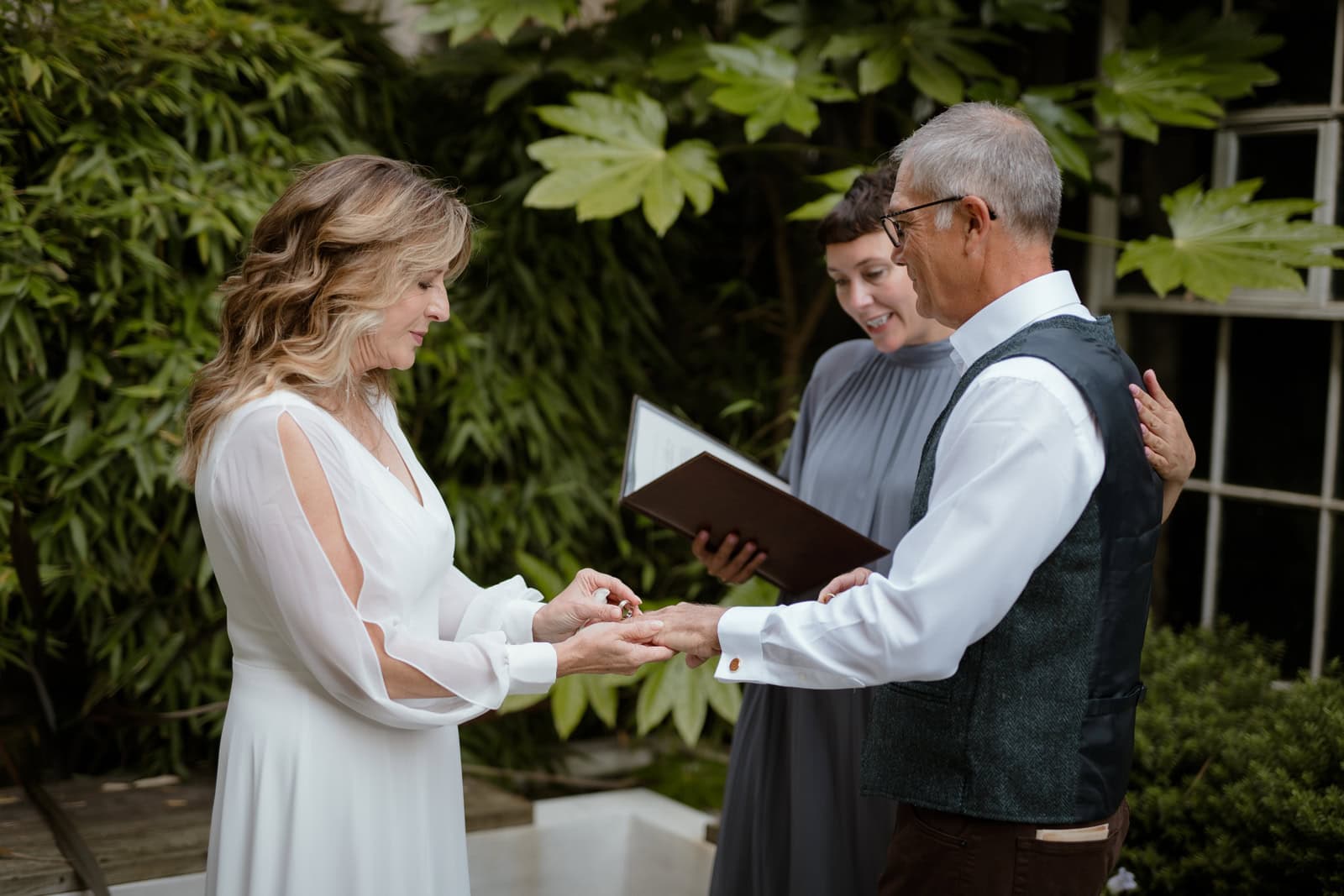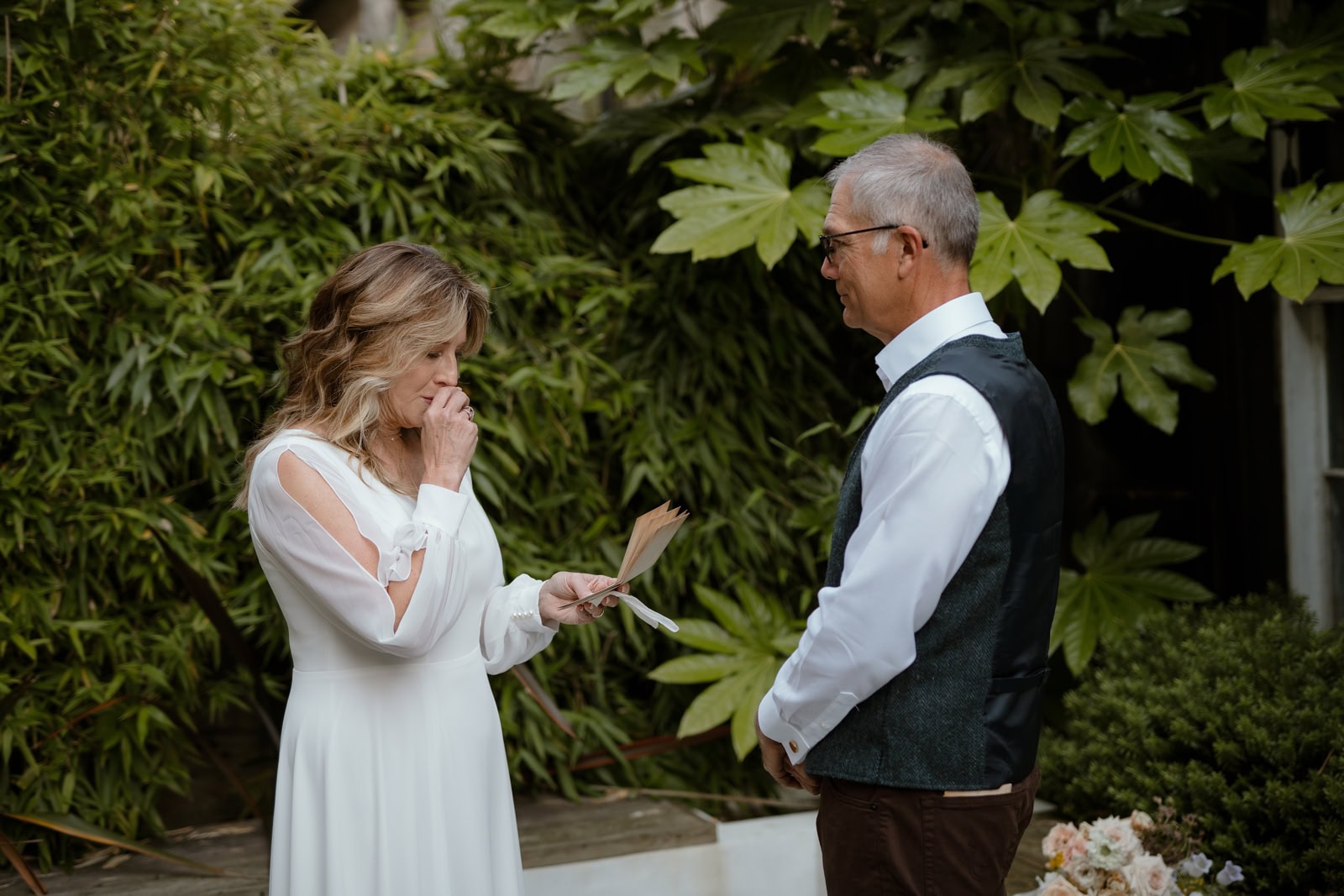 Kirsten & Scott: As morning people, we were able to have the flexibility of a 9:00am ceremony which included sharing personal commitments and the sweet sounds of birds during our first dance.