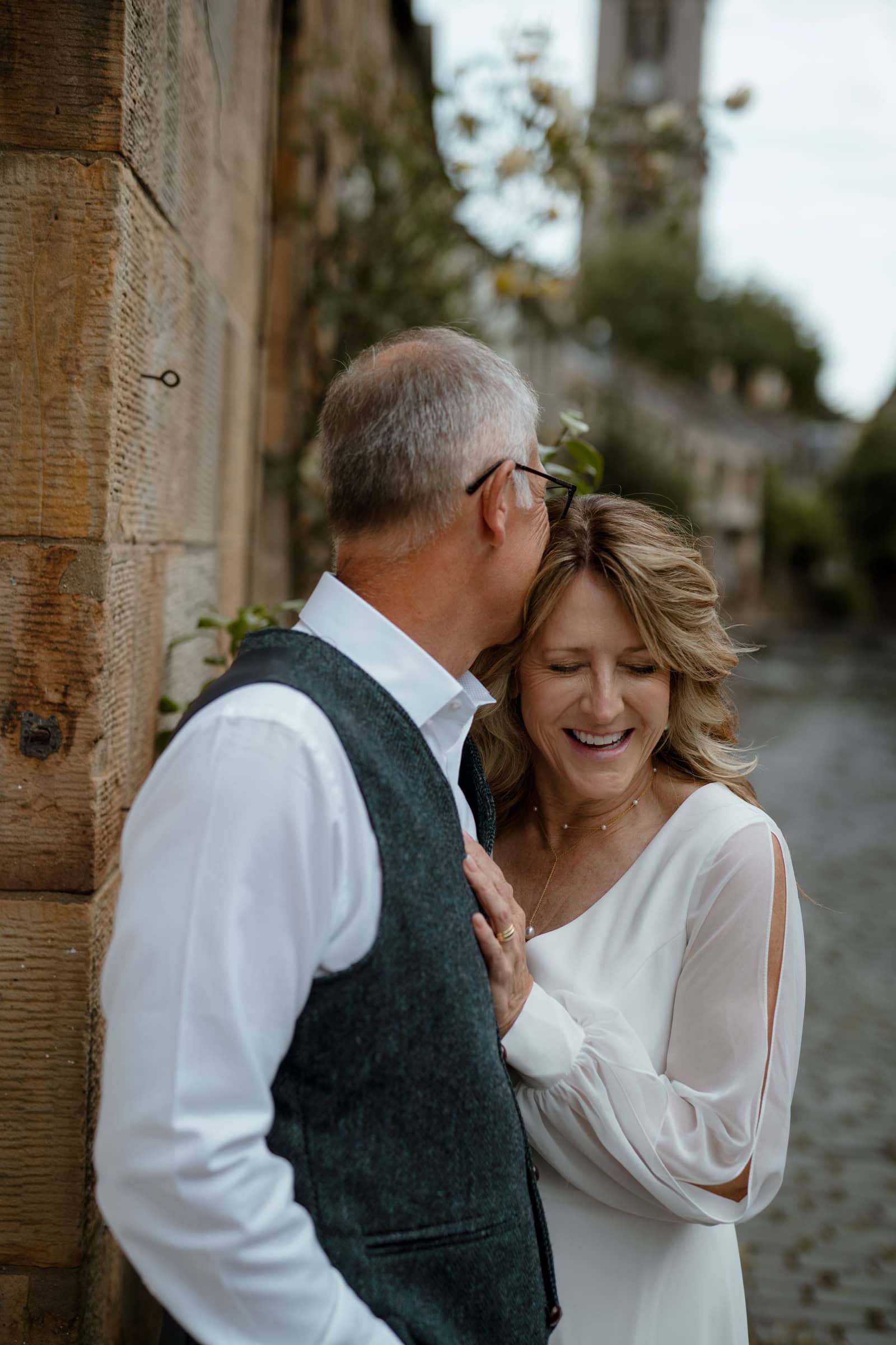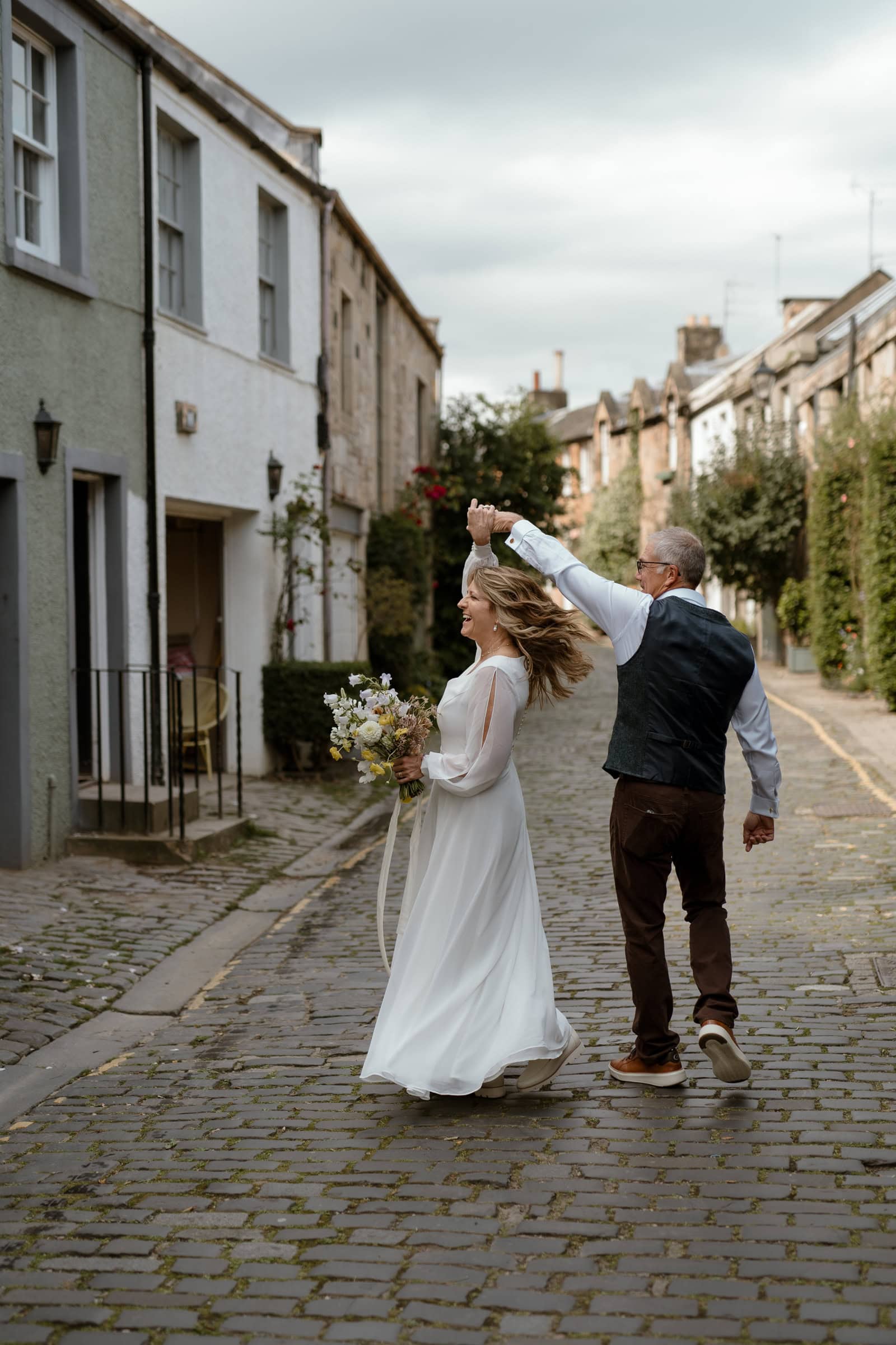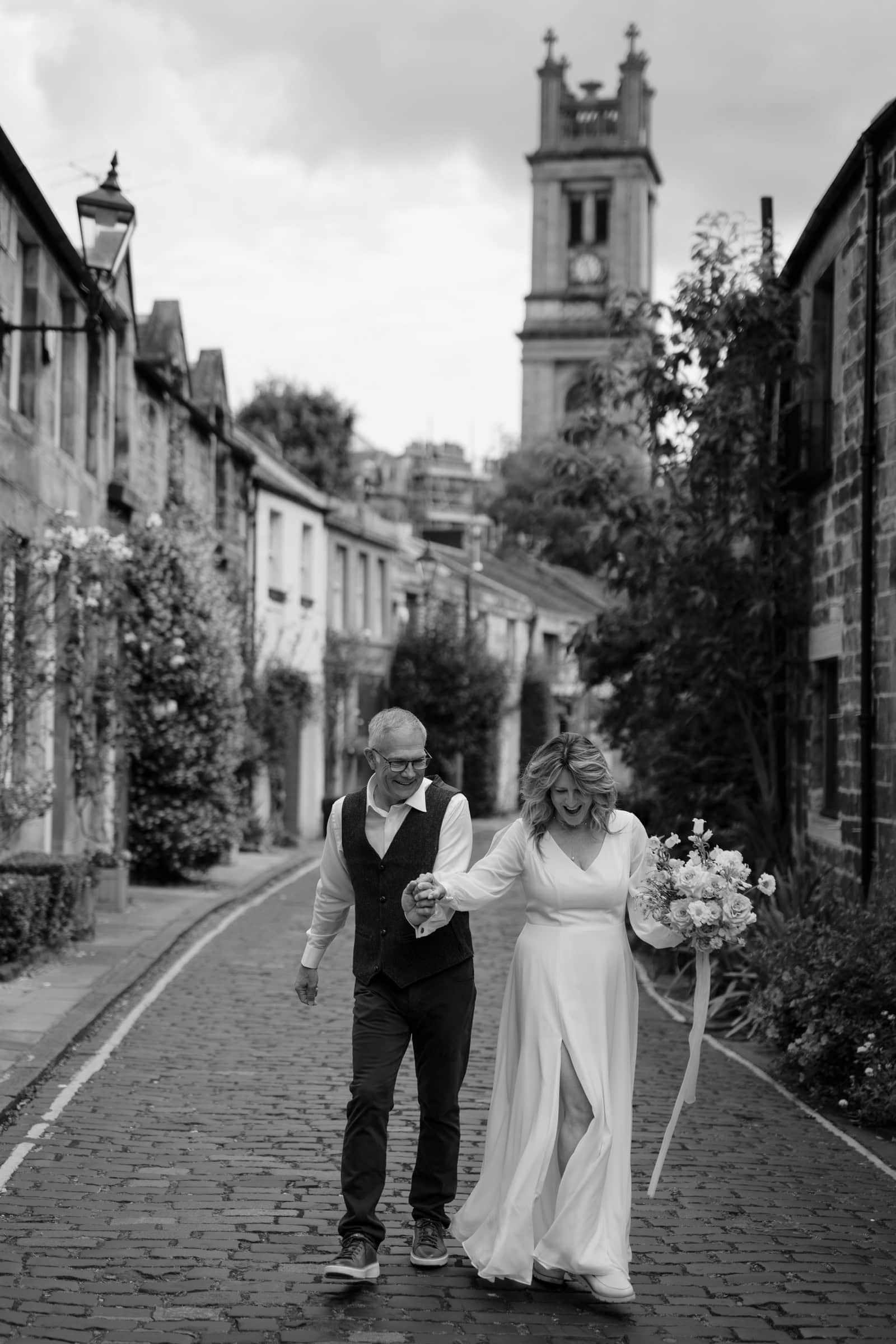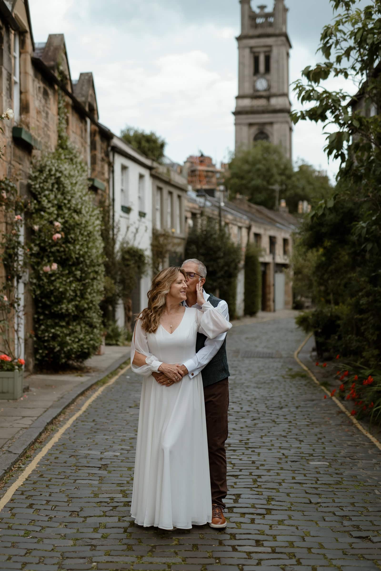 Kirsten & Scott: Our venue was a lovely flat found on VRBO in Stockbridge neighborhood with a sweet little private courtyard. We chose it for the convenience and privacy. The venue was a short walk to Circus Lane and Dean for pictures inspired by our photographer.