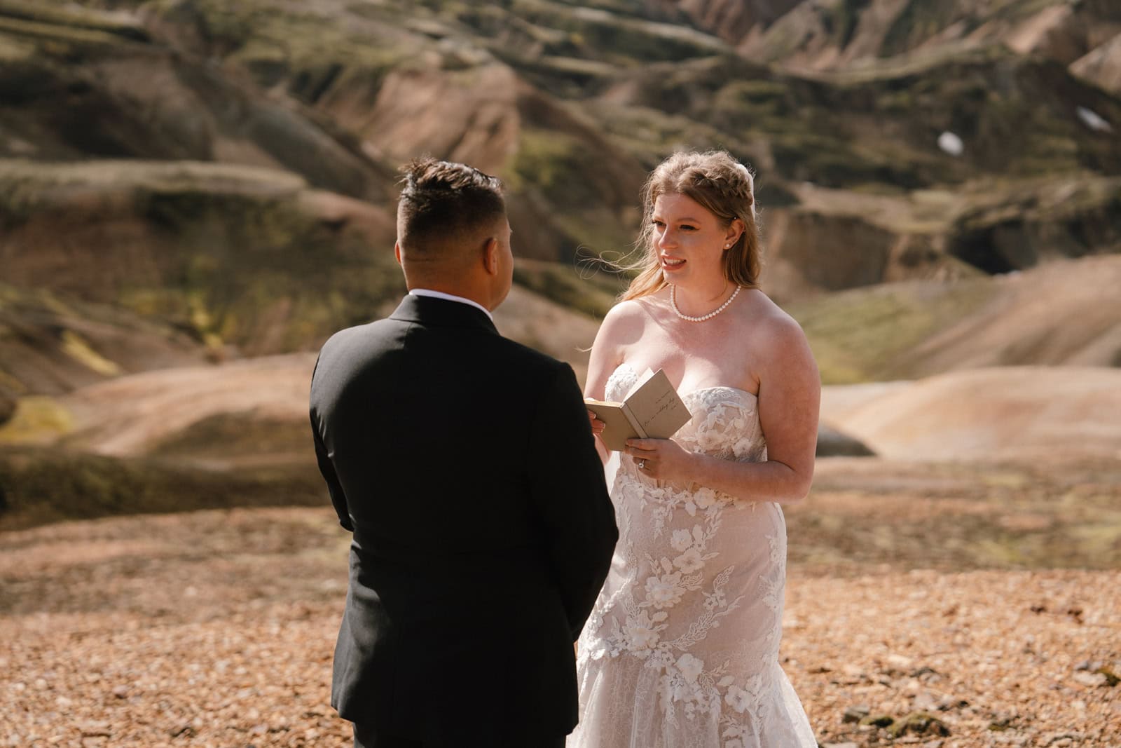 And finally, on the third day, they hiked to Landmannalaugar, where they had their official wedding ceremony surrounded nature and colorful mountains.