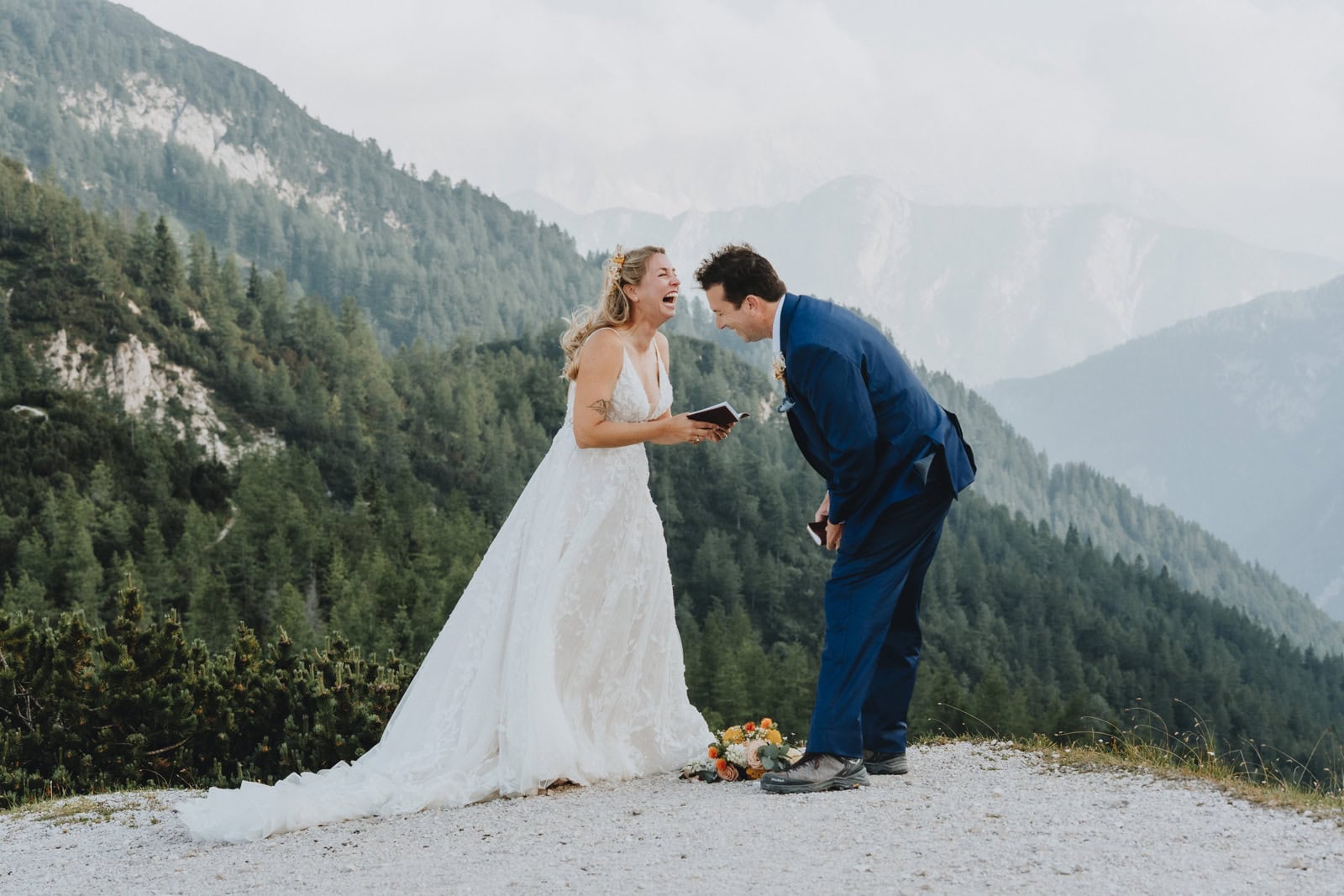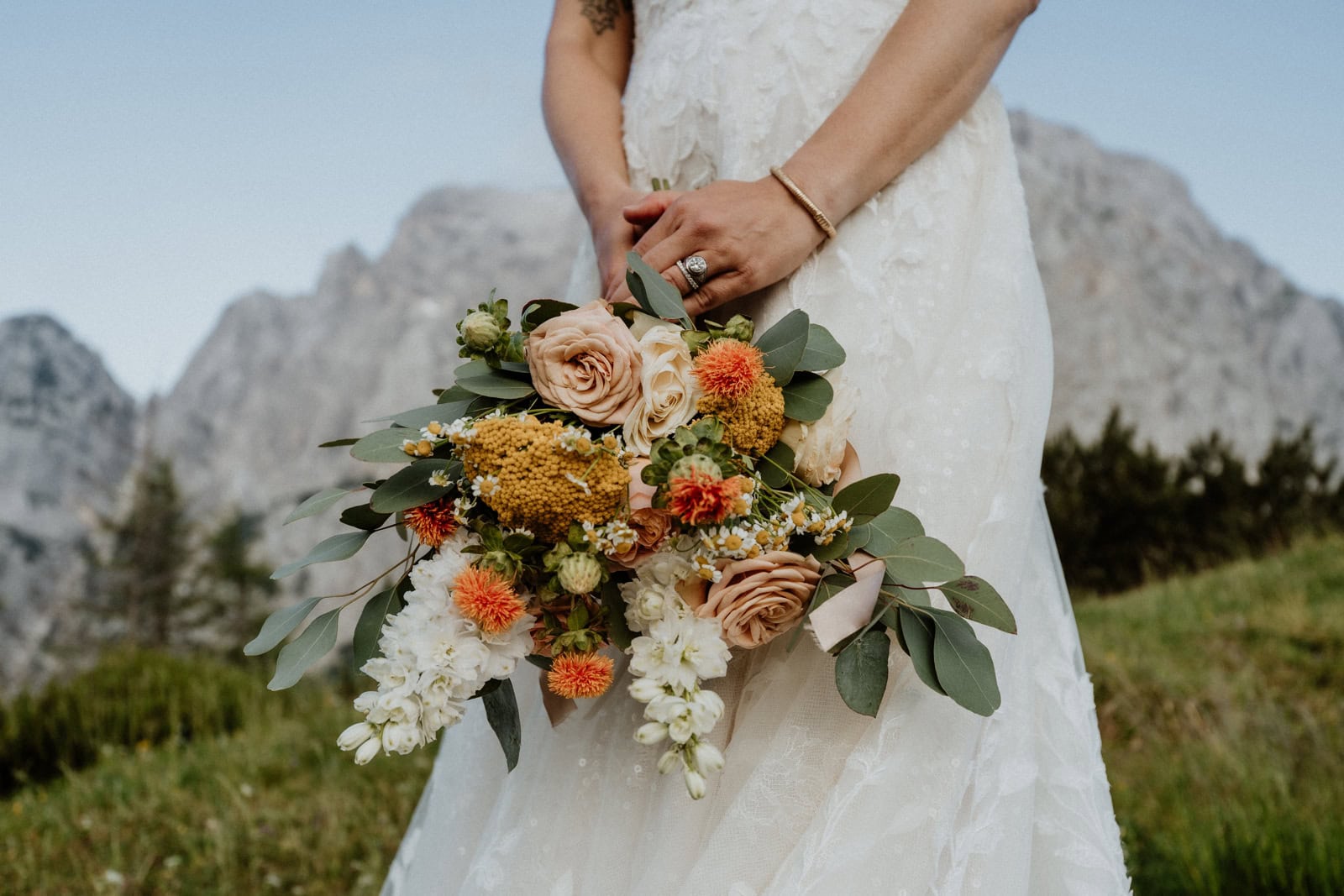 Jess & Autry: Yes, we incorporated native flower arrangements for both the bride and groom (bouquet and boutonniere), used their national beer to cheers (and drink!) in our photos (Union Lager). Additionally, our elopement location was held atop the Vrsic Pass, a historically and culturally important mountain pass in the Julian Alps.
