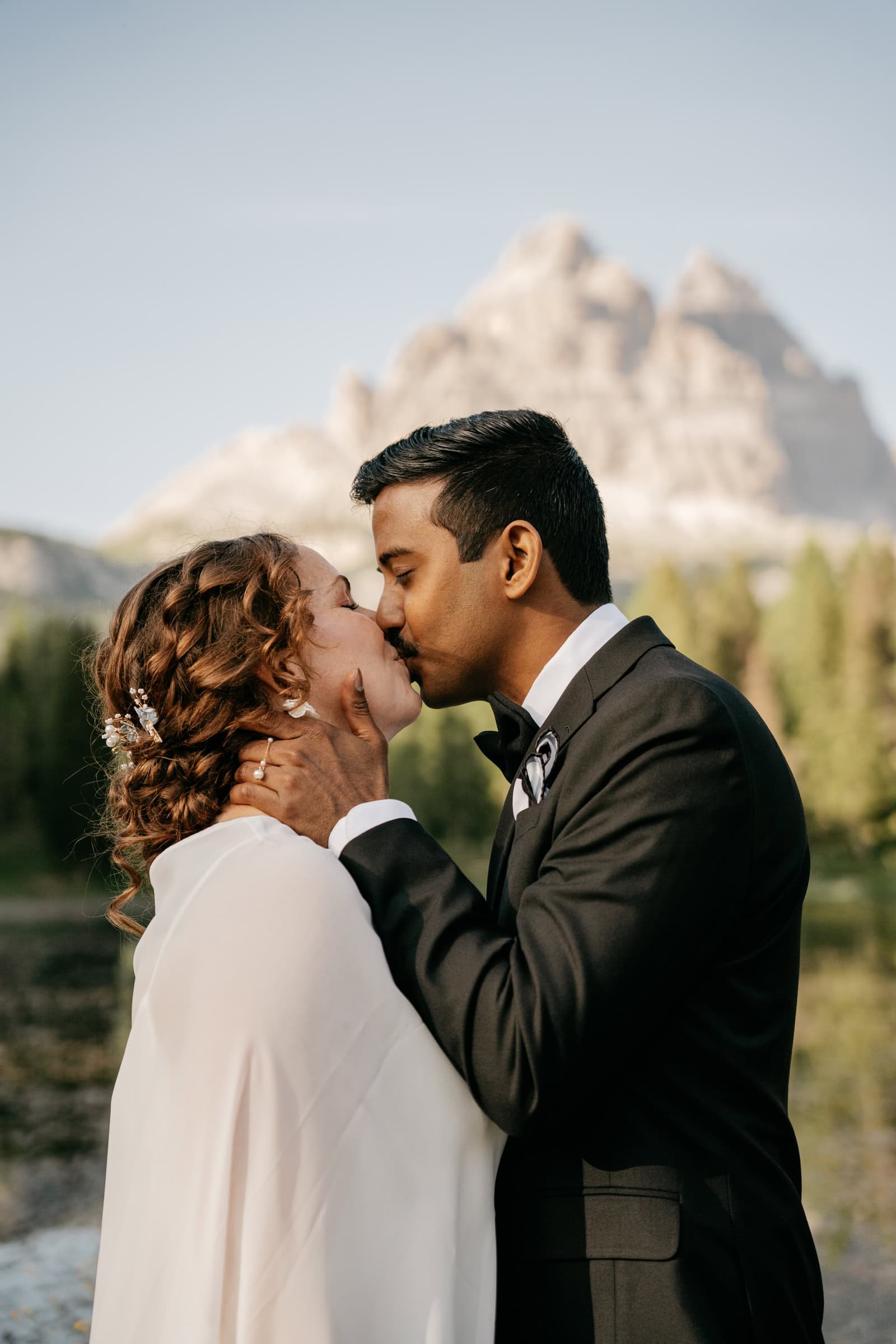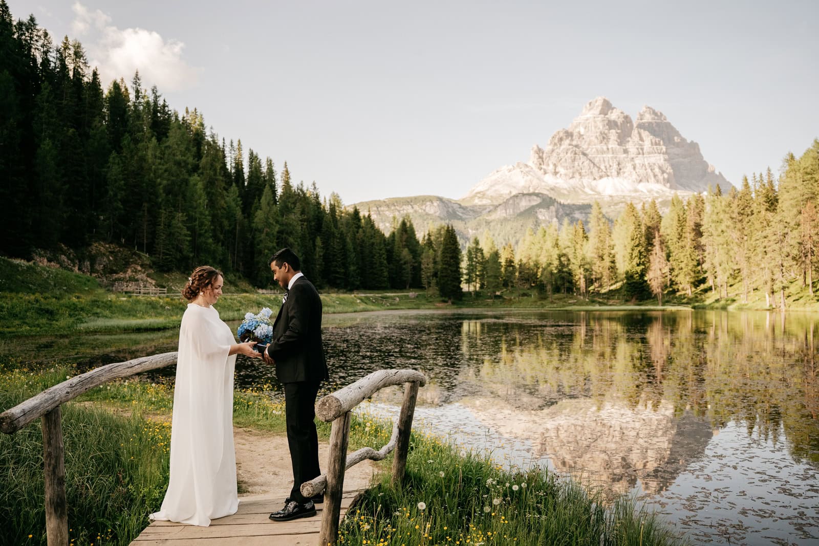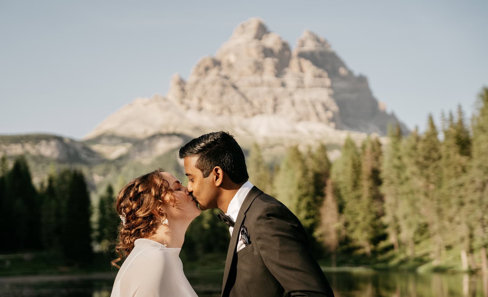 This Elopement in the Italian Dolomites is about two best friends – once coworkers, now soulmates – and they choose the Italian Alps to celebrate their love. It was simple yet deeply meaningful, magical, and entirely their own. They explored two quiet lakes in the Dolomites, exchanged vows at sunset, and let the mountains be their witness.