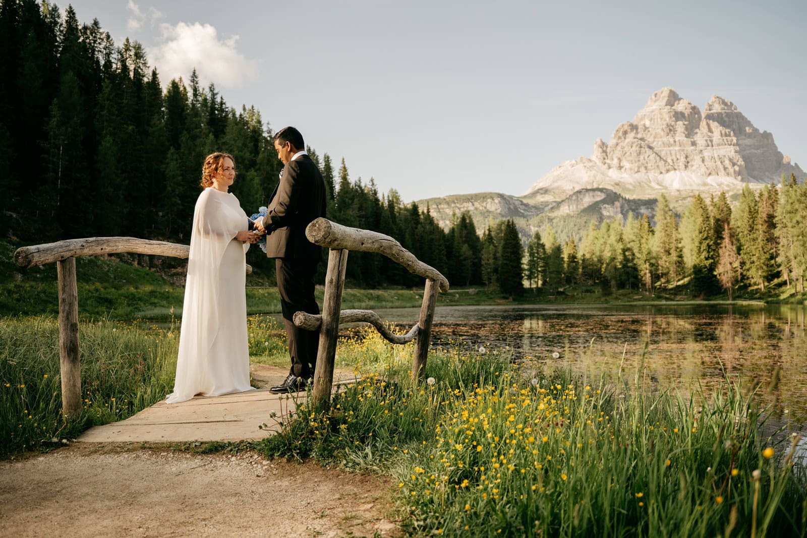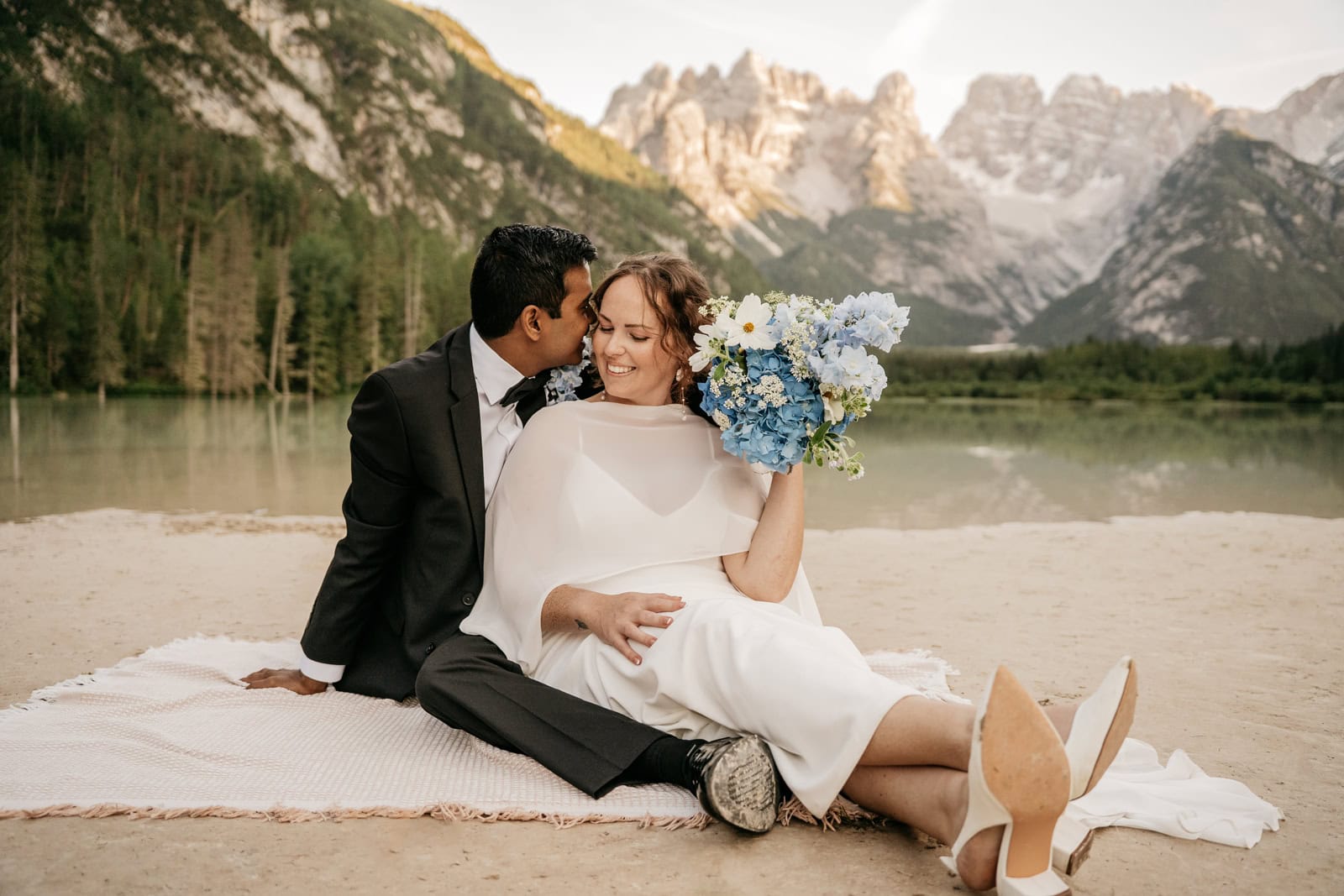For their photos, they envisioned something elegant yet relaxed, candid, and intimate. They want the day to feel cozy, romantic, and personal: just the two of them, without crowds or fuss. A lake and the surrounding Dolomites are their dream backdrop, with plans to exchange vows, wander the trails. We did sunset at two lakes in the Tre Cime NP.